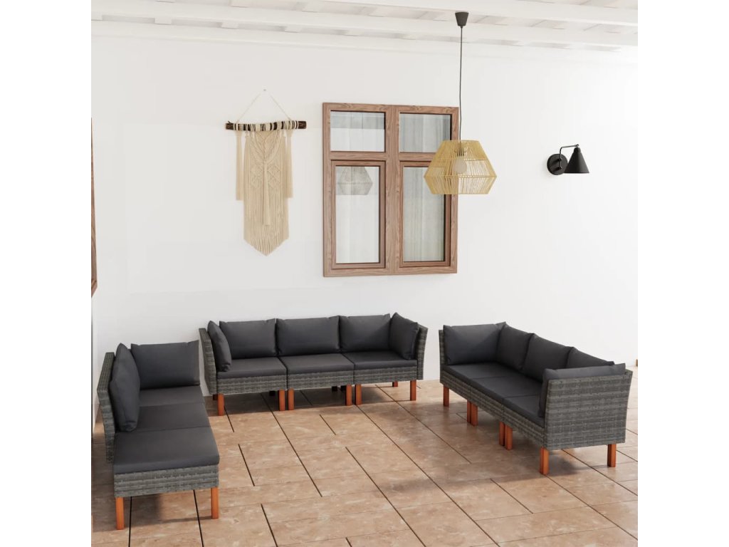 - Materiál: PE ratan, práškovaná oceľ, masívne eukalyptové drevo s olejovým náterom