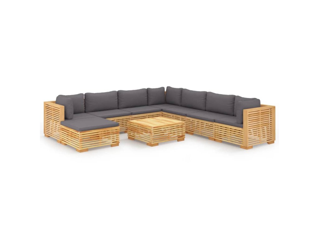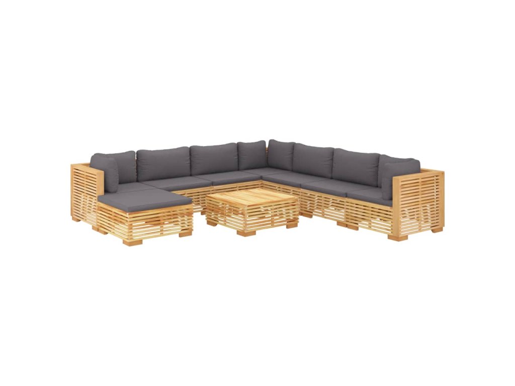 - Masívne teakové drevo: Masívne teakové drevo je krásny prírodný materiál. Bolo vyzreté, umelo vysušené a jemne obrúsené, čo mu dalo veľmi hladký vzhľad. Teakové drevo je známe svojou výnimočnou pevnosťou a odolnosťou voči poveternostným vplyvom.
