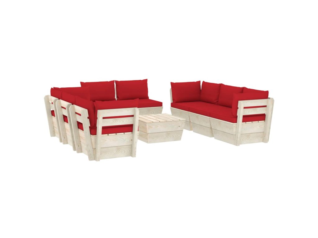Táto 9-dielna záhradná sedacia súprava z paliet sa dodáva s podložkami a poskytne vám skvelé miesto na oddychovanie, poobedný spánok či príjemné posedenia s rodinou a priateľmi počas krásnych slnečných dní. Drevená sedacia súprava s nadčasovým paletovým dizajnom vnesie do vašej záhrady, na terasu či do obývačky nádych rustikálnej atmosféry.