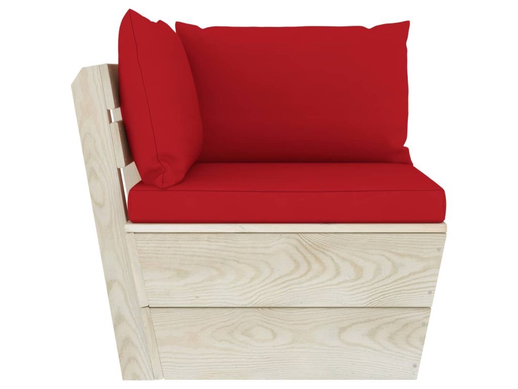 Záhradná sedacia súprava je vyrobená z impregnovaného smrekového dreva, vďaka čomu je trvácna a stabilná. Táto sedačka na terasu má pevnú konštrukciu a vyžaduje si len minimálnu údržbu. Stolík s pevnou doskou je ako stvorený na odkladanie jedál a nápojov, ktoré tak budete mať vždy poruke. Vďaka poťahu zo 100% polyesteru a hrubému polstrovaniu sú podložky na paletový nábytok mäkké a poskytnú vám optimálny komfort. Súprava má modulárny dizajn, a tak si ju môžete ľubovoľne rozložiť do rôznych tvarov.
