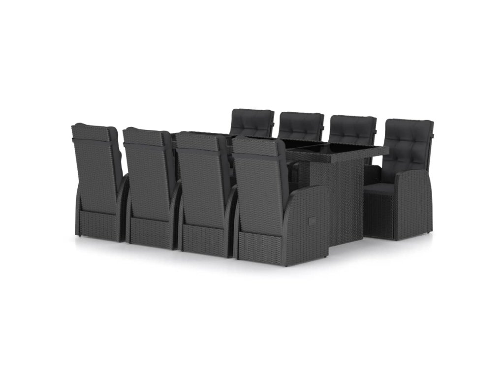 Táto súprava záhradného nábytku sa vyznačuje robustným oceľovým rámom s práškovaným nástrekom, ktorý je veľmi stabilný a odolný. Vďaka PE ratanu sa jedálenská súprava ľahko čistí, je odolná a vhodná na každodenné vonkajšie použitie. Doska stola sa ľahko čistí vlhkou handričkou. Sklápacie stoličky ponúkajú maximálny komfort počas sedenia a skvelú podporu. Operadlo je ľahko nastaviteľné podľa vášho želania pomocou tlačidla na boku. Hustá a mäkká sedačka a vankúše sú navyše tiež veľmi pohodlné.