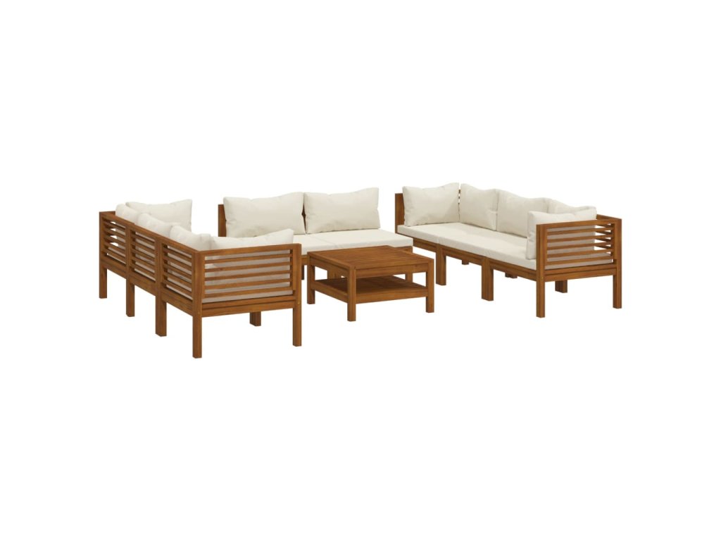 Sedacia súprava s rámom z akáciového masívu je pevná, robustná a trvácna. Súprava pohoviek je ošetrená olejovým náterom, vďaka čomu je vhodná do exteriéru. Odnímateľné podložky s hustou výplňou poskytujú maximálne pohodlie. Súčasťou súpravy je aj konferenčný stolík s jedinečným latkovým dizajnom. Vďaka praktickej modulárnej konštrukcii sa jednotlivé diely dajú ľubovoľne usporiadať a prispôsobiť okolitému prostrediu.