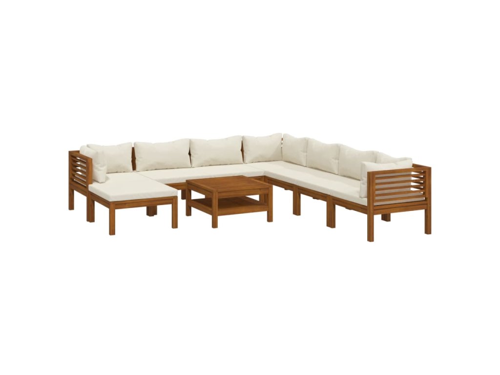 Sedacia súprava s rámom z akáciového masívu je pevná, robustná a trvácna. Súprava pohoviek je ošetrená olejovým náterom, vďaka čomu je vhodná do exteriéru. Odnímateľné podložky s hustou výplňou poskytujú maximálne pohodlie. Súčasťou súpravy je aj konferenčný stolík s jedinečným latkovým dizajnom. Vďaka praktickej modulárnej konštrukcii sa jednotlivé diely dajú ľubovoľne usporiadať a prispôsobiť okolitému prostrediu.