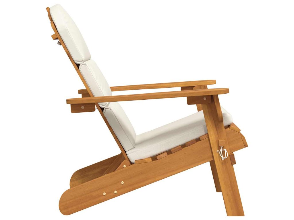 - Pohodlné sedenie: Kreslo Adirondack je skôr v uhle na ležanie ako na vzpriamené sedenie a sedí sa na ňom veľmi pohodlne. Vankúše na operadle a sedadle tiež zvyšujú pohodlie.