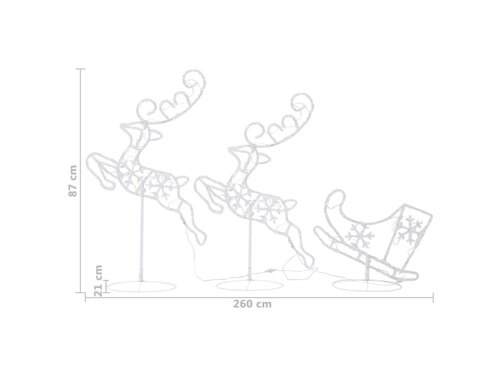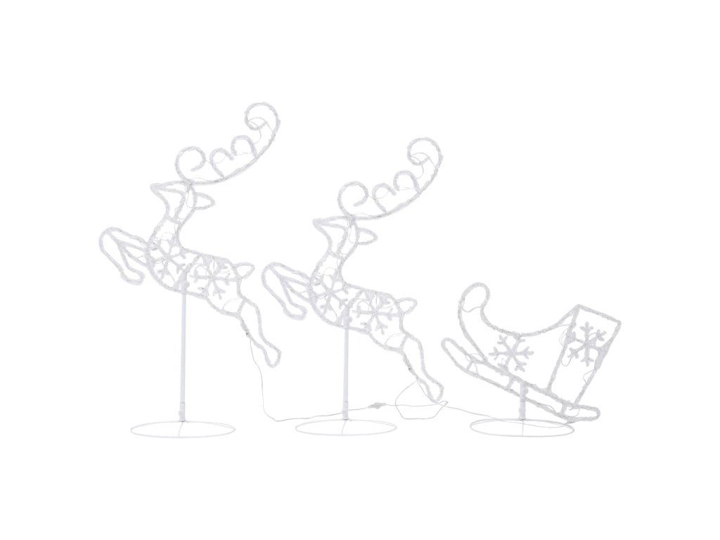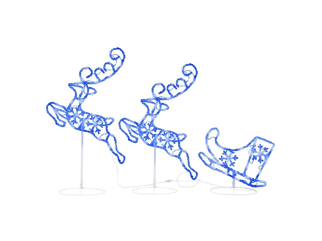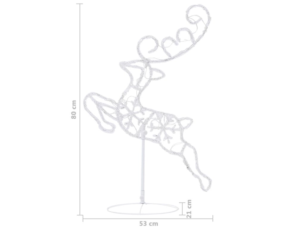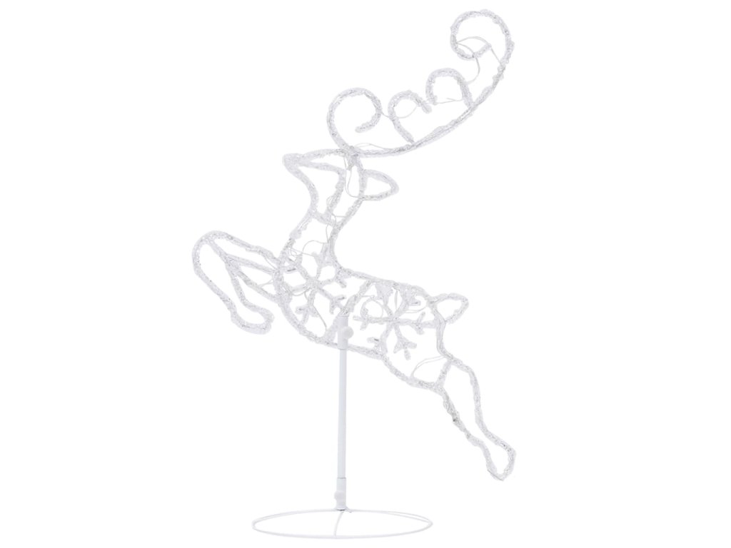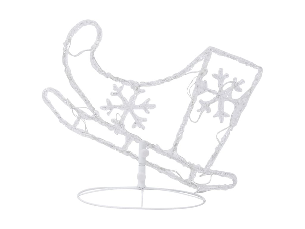 Táto vianočná dekorácia je vyrobená z akrylu a pôsobí chladným a ľadovým dojmom. Žiariaci sob so saňami je vybavený 72 LED svetlami, ktoré sú energeticky účinné a majú dlhú životnosť. Je navrhnutý s 8 rôznymi svetelnými efektmi: kombinácia všetkých efektov, pomalé rozsvietenie, blikanie, vlny, naháňanie/tečúca voda, sekvenčné, trvalé a pomalé stmievanie. Rozsvieťte túto ozdobu a vytvorte magickú sviatočnú atmosféru. Dodaný podstavec dekorácii dodáva stabilitu.