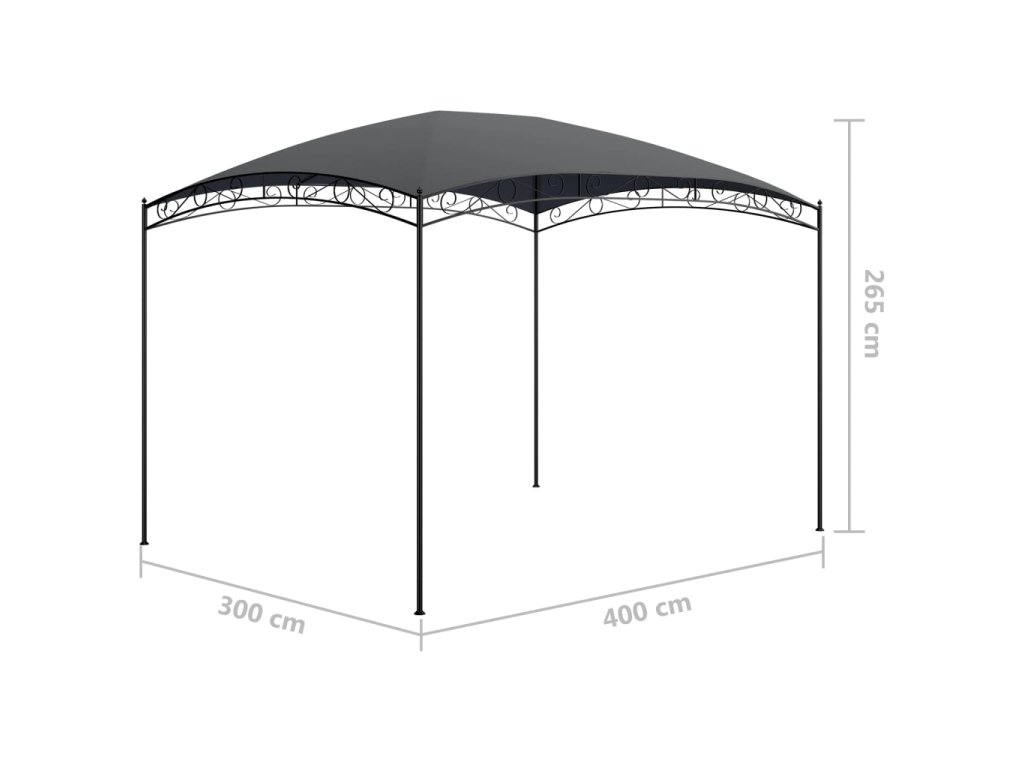 Tento altánok ponúka pevnú oceľovú konštrukciu, vďaka čomu je odolný a robustný pre vonkajšie použitie. Strecha je vyrobená z látky s povrchovou úpravou z PA, ktorá poskytuje ochranu pred dažďom a slnečným žiarením, aby ste si mohli vonkajšie udalosti užiť bez obáv. Tento prístrešok bude nielen praktickým, ale aj štýlovým doplnkom do exteriéru.