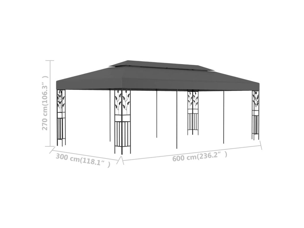Tento priestranný altánok s ozdobnými kvetovanými prvkami bezpochyby predstavuje elegantný doplnok do vašich vonkajších priestorov.
