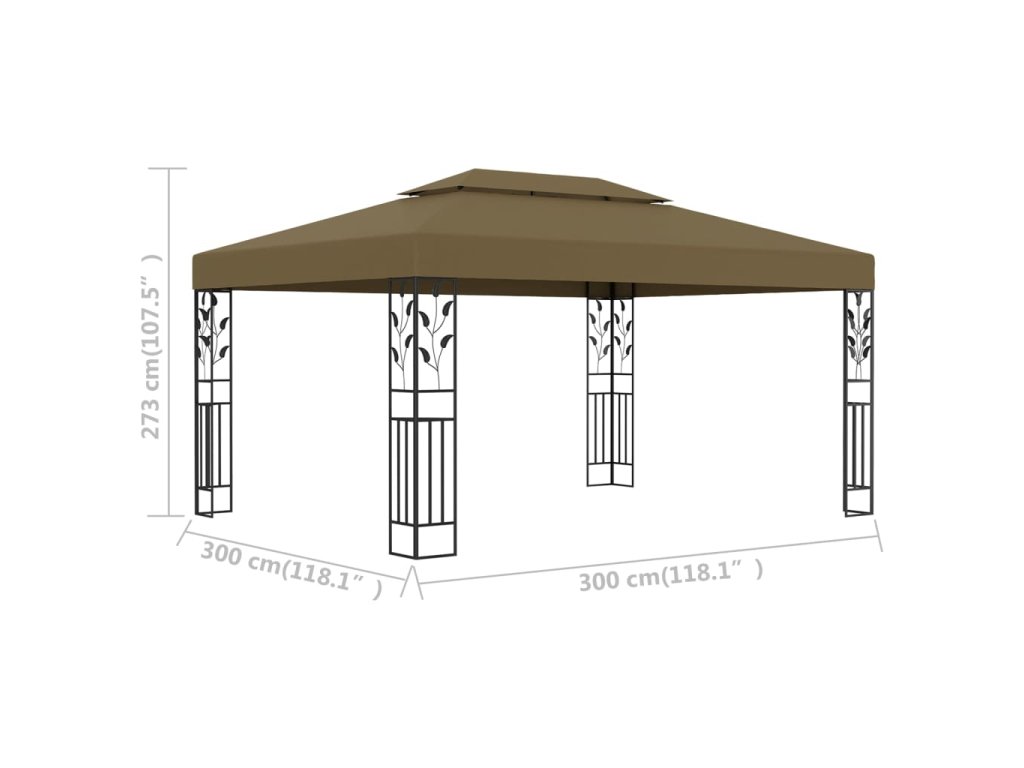 Altánok je vyrobený z ocele s práškovou povrchovou úpravou, a preto je veľmi pevný a trvácny. Má dvojitú striešku zo 100% polyesteru s vrstvou PA, ktorý je vodovzdorný. Striešku môžete jednoducho zložiť a oprať alebo odložiť, keď ju nepoužívate.