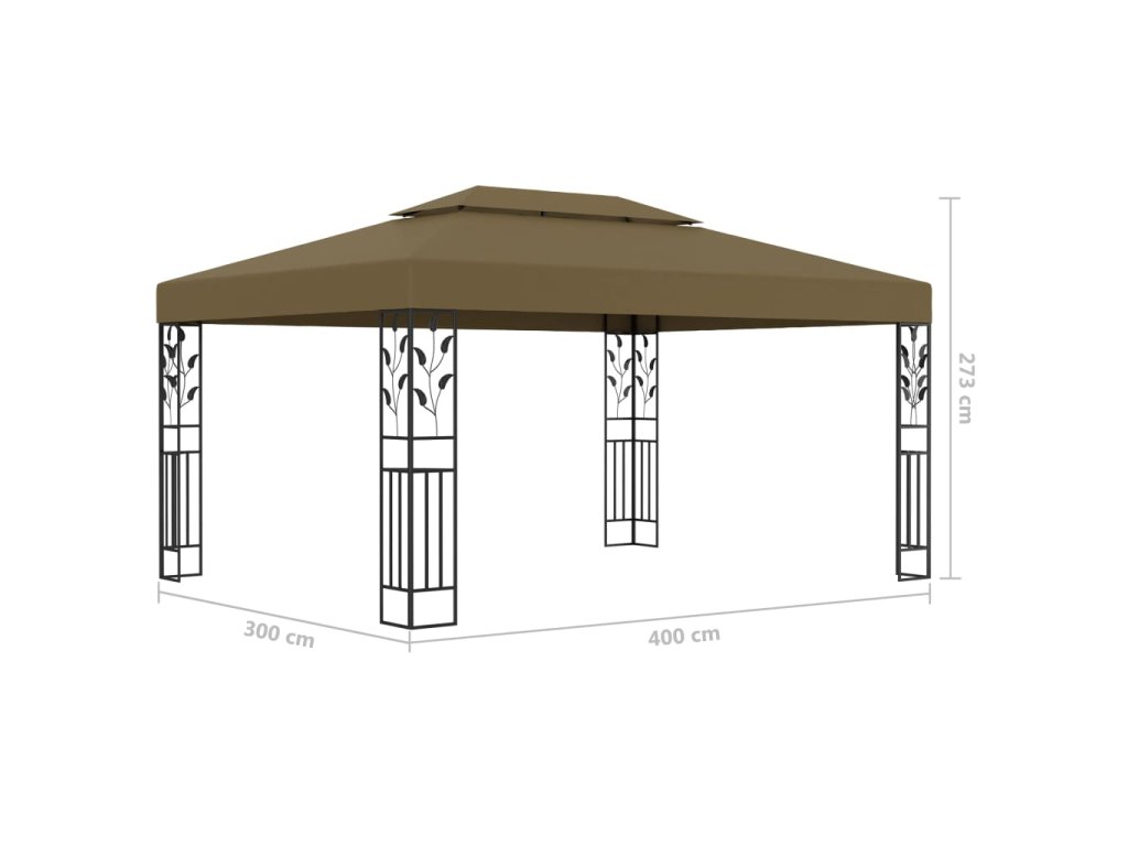 Altánok je vyrobený z ocele s práškovou povrchovou úpravou, a preto je veľmi pevný a trvácny. Má dvojitú striešku zo 100% polyesteru s vrstvou PA, ktorý je vodovzdorný. Striešku môžete jednoducho zložiť a oprať alebo odložiť, keď ju nepoužívate. Svetelná reťaz po zotmení v záhrade vytvorí útulnú atmosféru. Svetlá nijako neznečisťujú životné prostredie, pretože sa počas dňa nabíjajú slnečnou energiou.