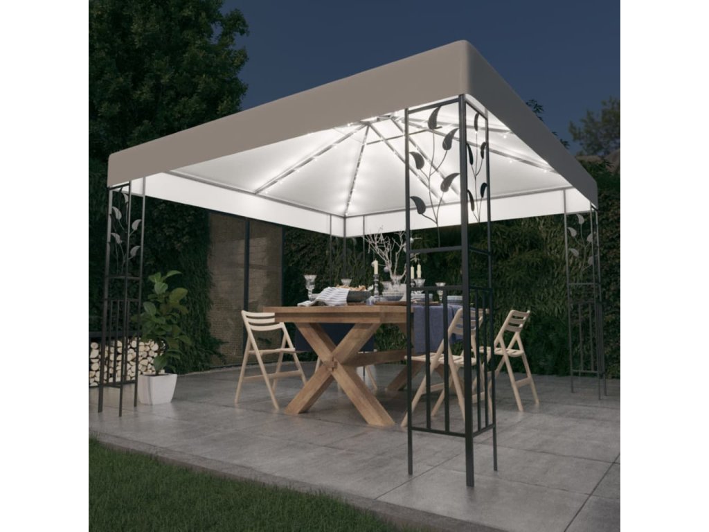 Altánok pozostáva z robustnej oceľovej konštrukcie s trvácnou práškovou povrchovou úpravou, ktorá je odolná voči hrdzi, a tak vám bude slúžiť dlhé roky. Strieška s vetraním sa postará o to, aby slnko ani dážď nenarušili zábavu počas rodinných stretnutí, grilovačiek, popoludňajších piknikov a narodeninových osláv. Strieška je vyrobená z kvalitnej látky s vrstvou PA, ktorá dokáže zablokovať väčšinu škodlivých slnečných lúčov. Strieška má vystužené rohy a zapínanie na suchý zips, pomocou ktorého sa dá jednoducho pripevniť k rámu. Svetelná reťaz po zotmení v záhrade vytvorí útulnú atmosféru. Svetlá nijako neznečisťujú životné prostredie, pretože sa počas dňa nabíjajú slnečnou energiou.