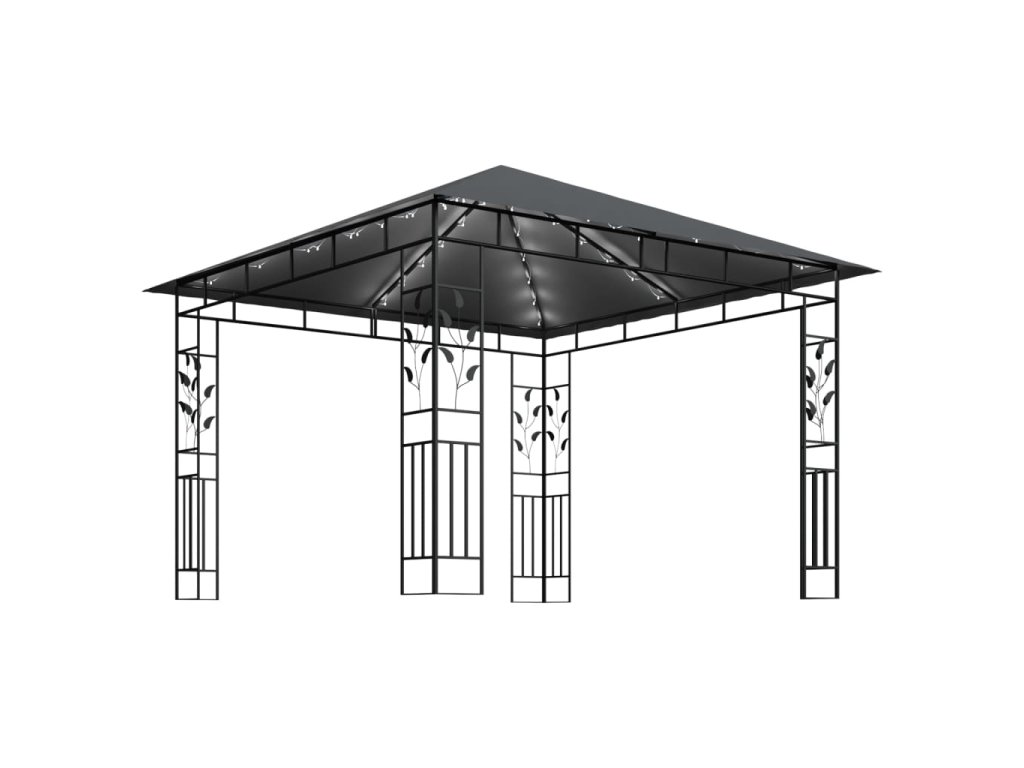 Rám má pevnú kovovú konštrukciu, vďaka čomu je trvácny a stabilný. Látková strieška poskytuje ochranu pred horúcim slnkom, a tak vám umožní vychutnávať si pobyt na čerstvom vzduchu v príjemnom tieni. Záhradný stan je vybavený aj moskytiérami, ktoré sa postarajú o to, aby sa dnu nedostal otravný hmyz a komáre a neznepríjemňoval vám pobyt na čerstvom vzduchu. Altánok sa dá rychlo postaviť. Svetelná reťaz po zotmení v záhrade vytvorí útulnú atmosféru. Svetlá nijako neznečisťujú životné prostredie, pretože sa počas dňa nabíjajú slnečnou energiou.