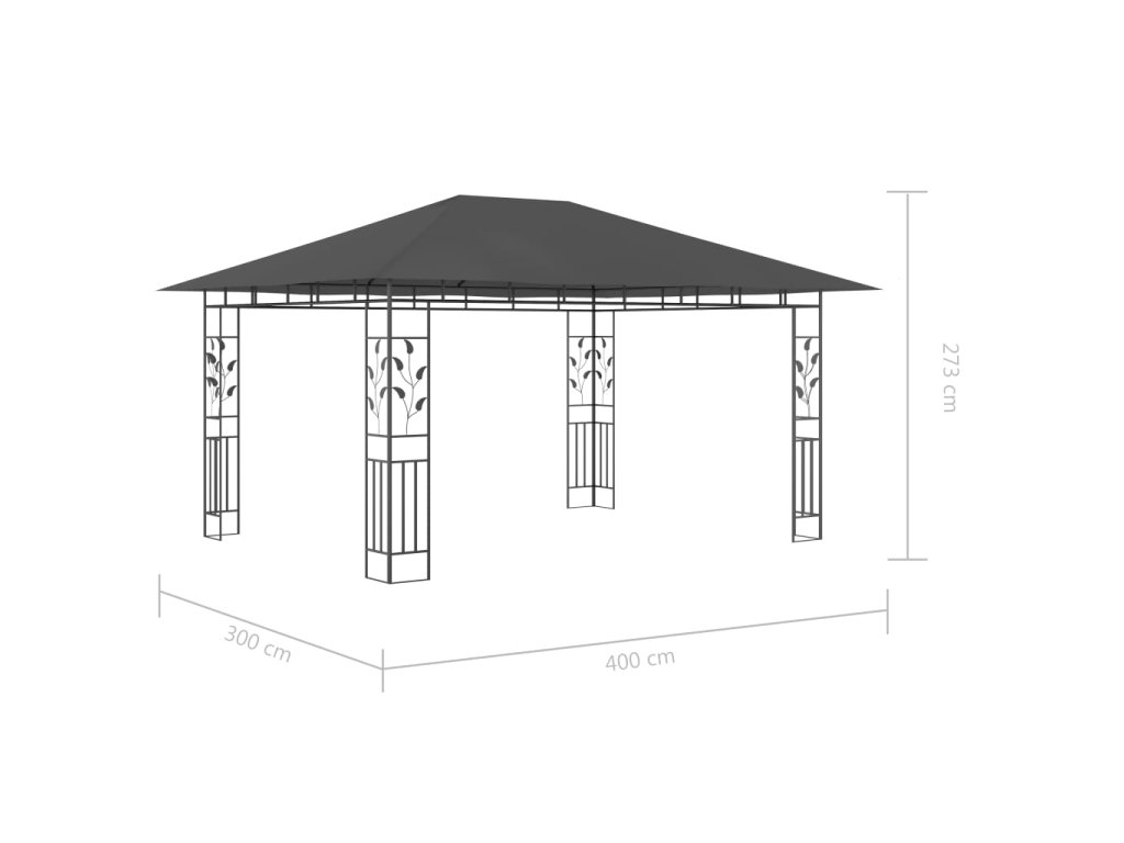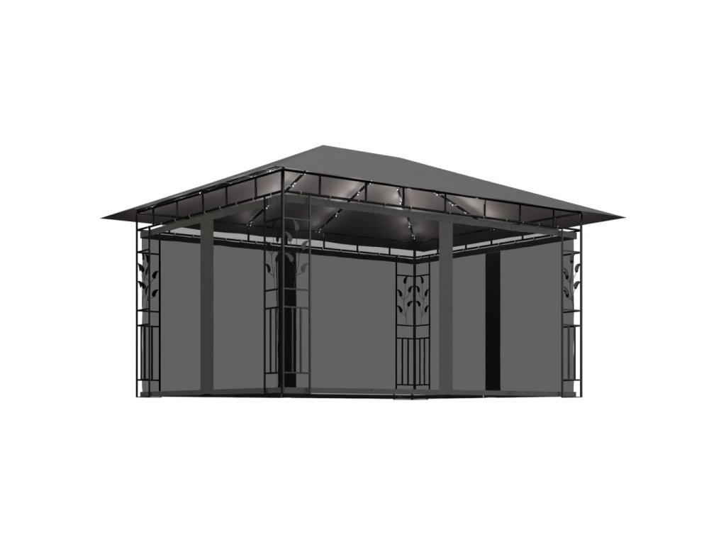 Rám má pevnú kovovú konštrukciu, vďaka čomu je trvácny a stabilný. Látková strieška poskytuje ochranu pred horúcim slnkom, a tak vám umožní vychutnávať si pobyt na čerstvom vzduchu v príjemnom tieni. Záhradný stan je vybavený aj moskytiérami, ktoré sa postarajú o to, aby sa dnu nedostal otravný hmyz a komáre a neznepríjemňoval vám pobyt na čerstvom vzduchu. Altánok sa dá rychlo postaviť. Svetelná reťaz po zotmení v záhrade vytvorí útulnú atmosféru. Svetlá nijako neznečisťujú životné prostredie, pretože sa počas dňa nabíjajú slnečnou energiou.