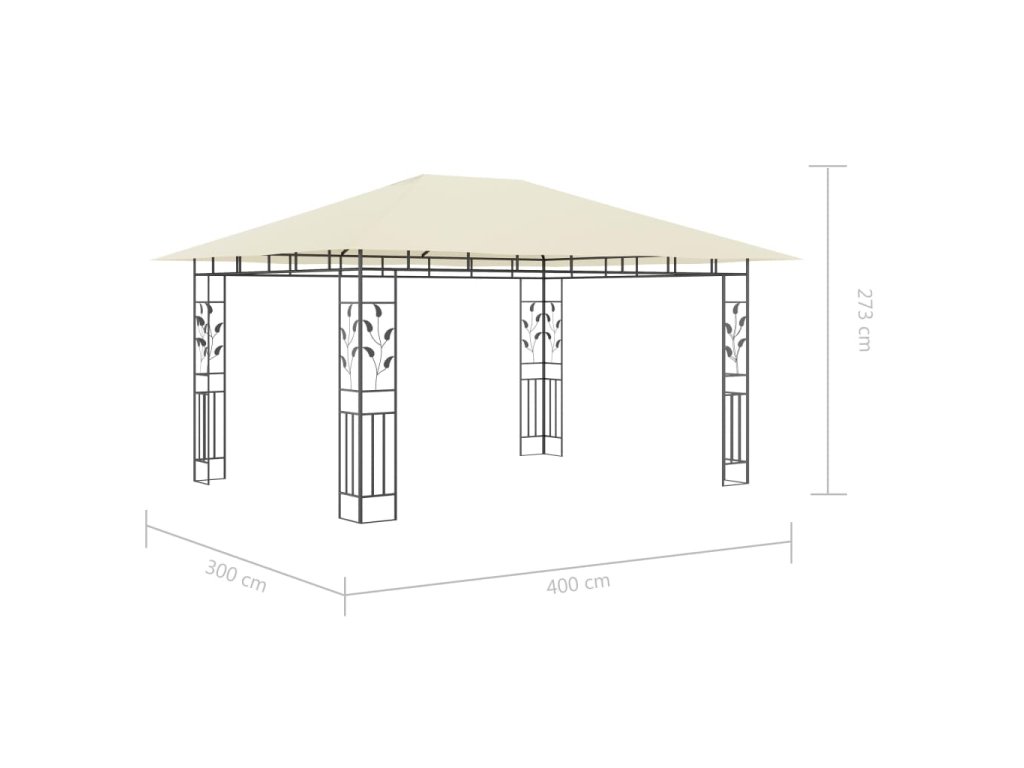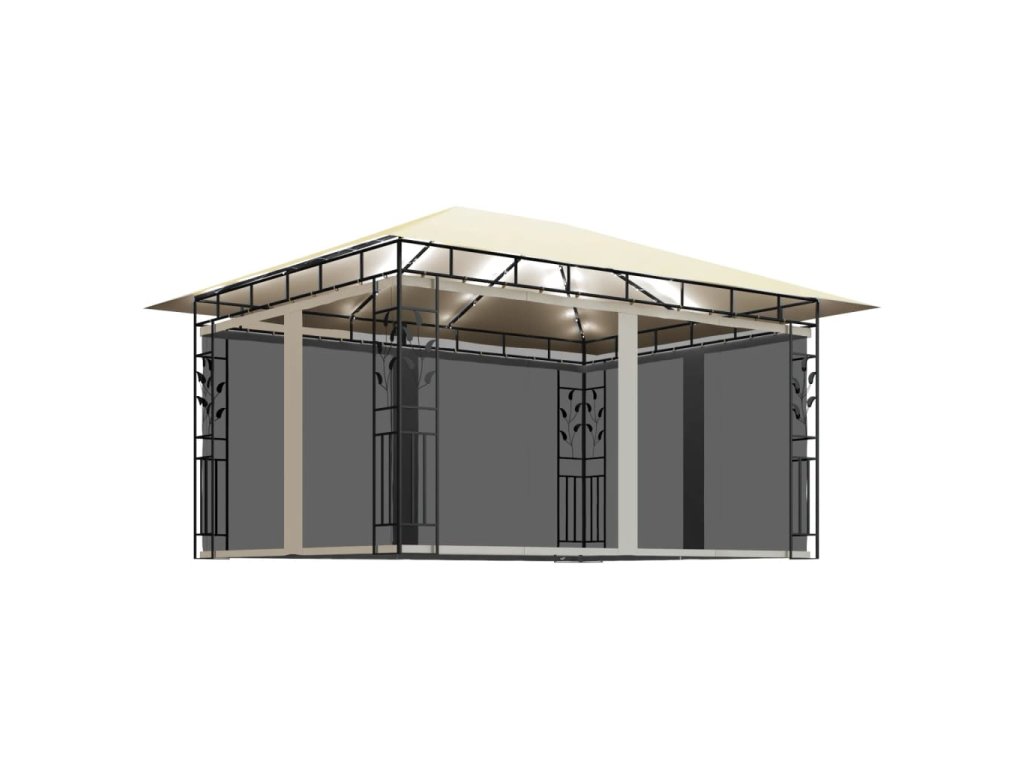 Rám má pevnú kovovú konštrukciu, vďaka čomu je trvácny a stabilný. Látková strieška poskytuje ochranu pred horúcim slnkom, a tak vám umožní vychutnávať si pobyt na čerstvom vzduchu v príjemnom tieni. Záhradný stan je vybavený aj moskytiérami, ktoré sa postarajú o to, aby sa dnu nedostal otravný hmyz a komáre a neznepríjemňoval vám pobyt na čerstvom vzduchu. Altánok sa dá rychlo postaviť. Svetelná reťaz po zotmení v záhrade vytvorí útulnú atmosféru. Svetlá nijako neznečisťujú životné prostredie, pretože sa počas dňa nabíjajú slnečnou energiou.