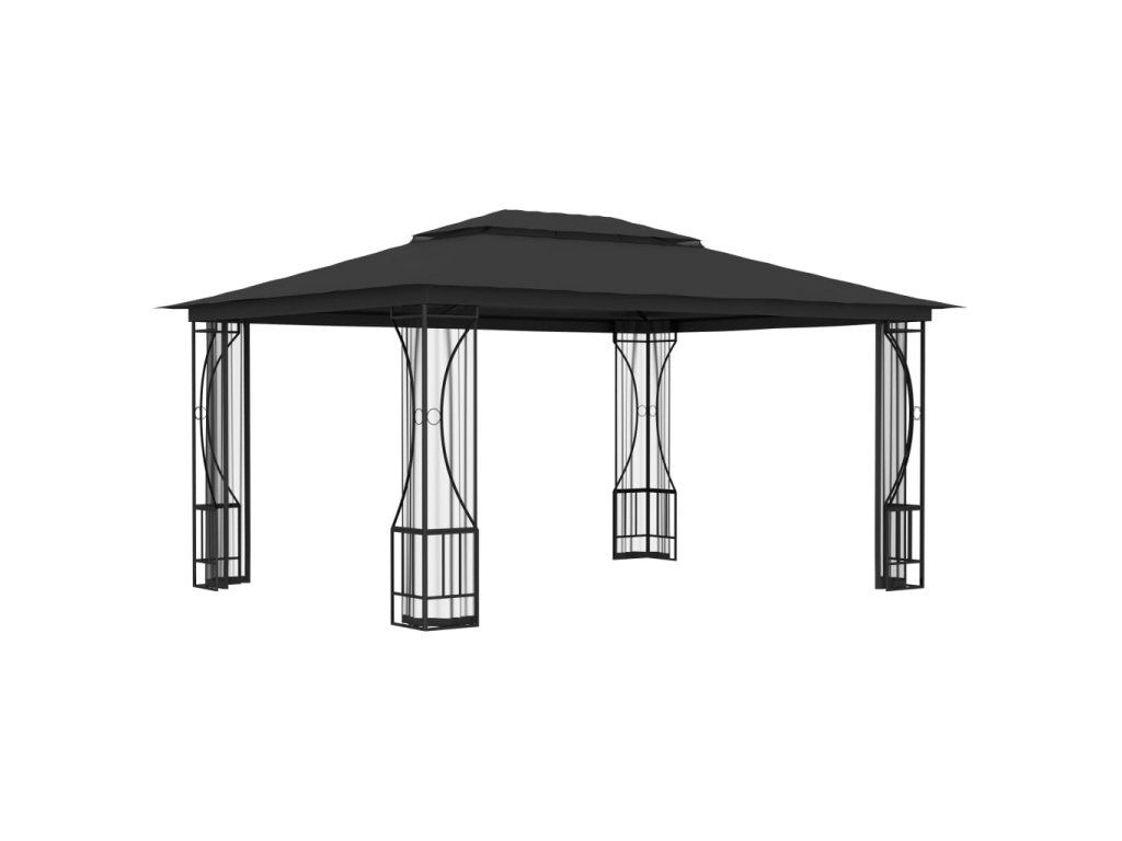 Tento praktický párty stan má oceľový rám a je veľmi pevný a trvácny. Ochranná strecha, ako aj odnímateľné závesy, sú vyrobené zo špeciálnej polyesterovej látky s vrstvou PA, ktorá je vhodná do exteriéru, pretože je odolná voči UV žiareniu. Súčasťou altánku sú aj sieťky, ktoré sú priehľadné, ľahké a vzdušné. Cez deň výborne prepúšťajú svetlo a v noci vás ochránia pred dotieravým hmyzom, a tak vám umožnia užiť si príjemný večer v záhrade. Tento krásny vonkajší prístrešok sa navyše dá rýchlo a ľahko postaviť.