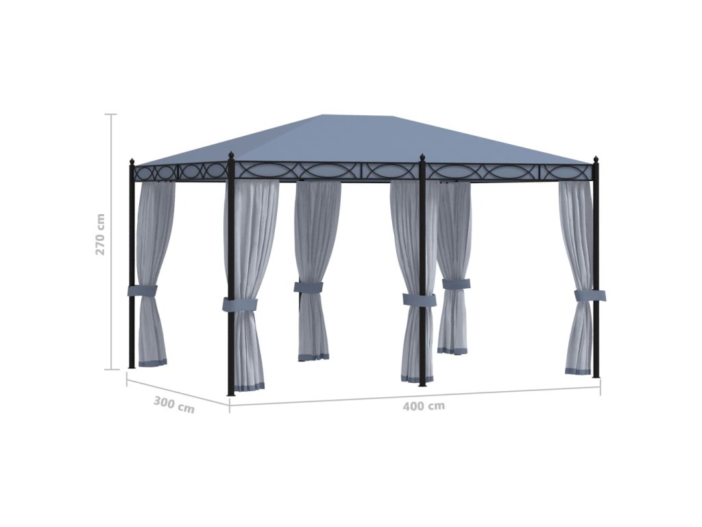 Tento altánok so sieťkami má klasický a elegantný dizajn a poskytne vám príjemné miesto v tieni počas rôznych udalostí v exteriéri, či už pôjde o večere, rodinné posedenia, ale aj iné aktivity.