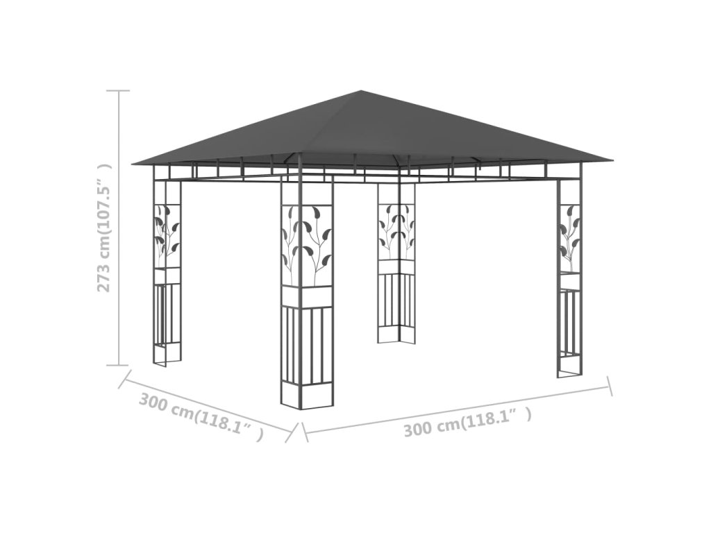 Rám má pevnú kovovú konštrukciu, vďaka ktorej je odolný a stabilný. Látková strecha vás ochráni pred slnečným žiarením a pomôže vám tak užiť si lepší komfort pri vašich vonkajších aktivitách. Tento stan vybavený moskytiérami vás ochráni pred hmyzom a komármi. Svoj voľný čas v exteriéri si tak môžete užiť bez obmedzení. Tento altánok je možné zmontovať v krátkom čase. Montáž nášho altánku je jednoduchá.
