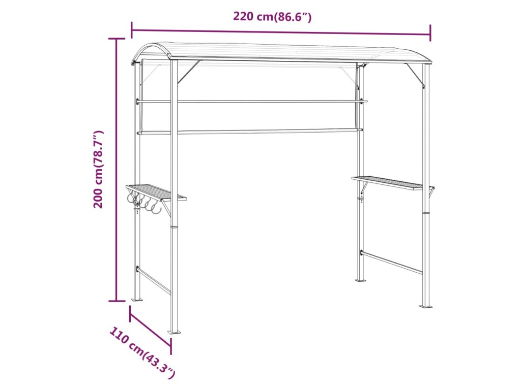 - Pevný rám: Altánok má kovový rám s práškovým nástrekom, ktorý zaisťuje pevnosť a stabilitu.