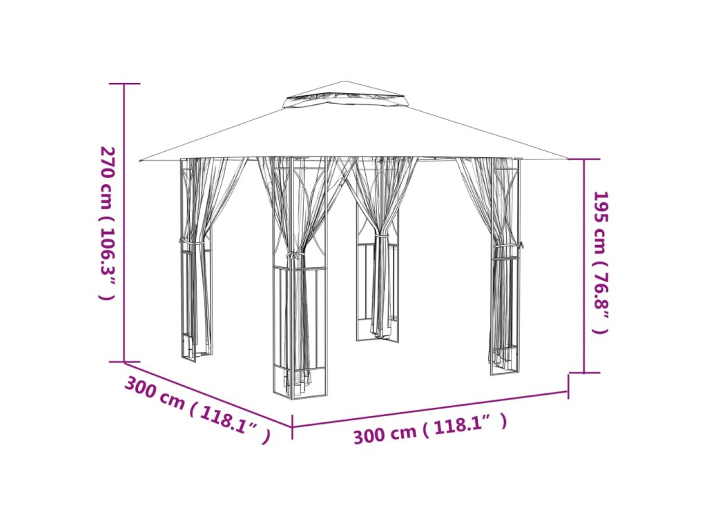 - Celkové rozmery: 300 x 300 x 270 cm (D x Š x V)