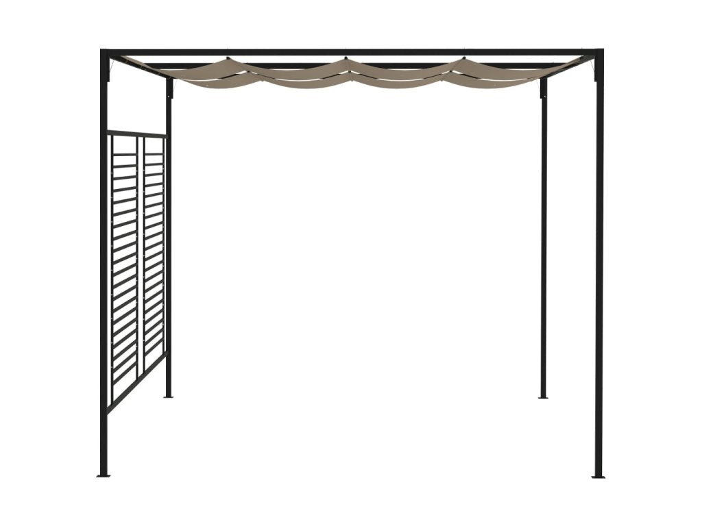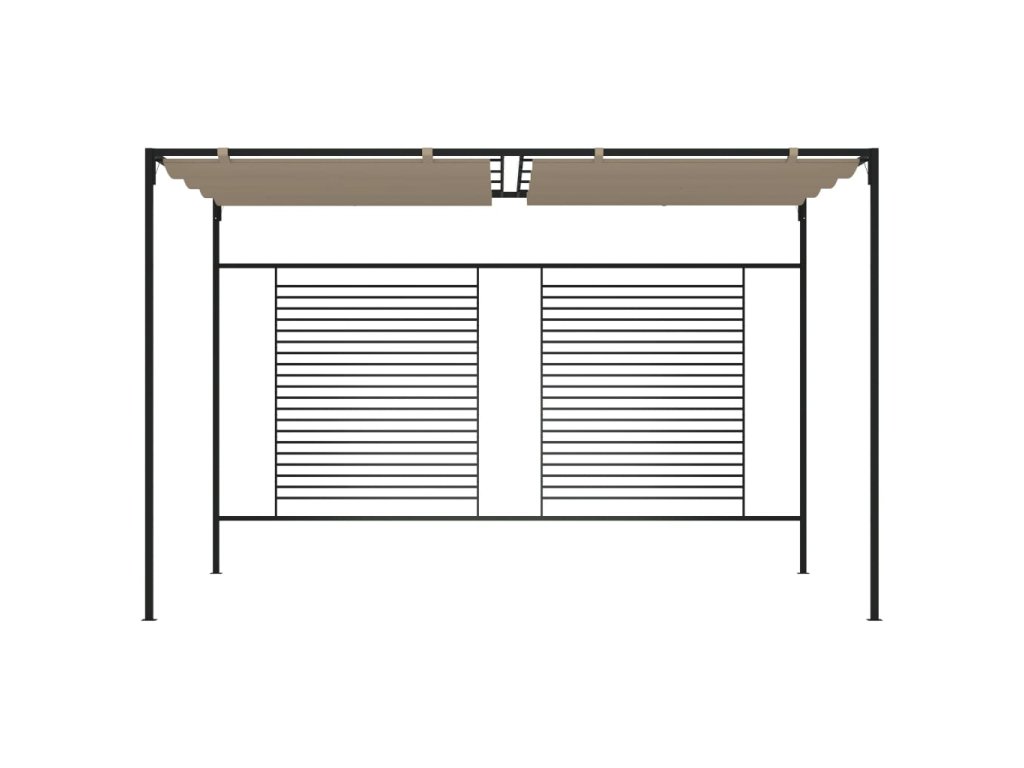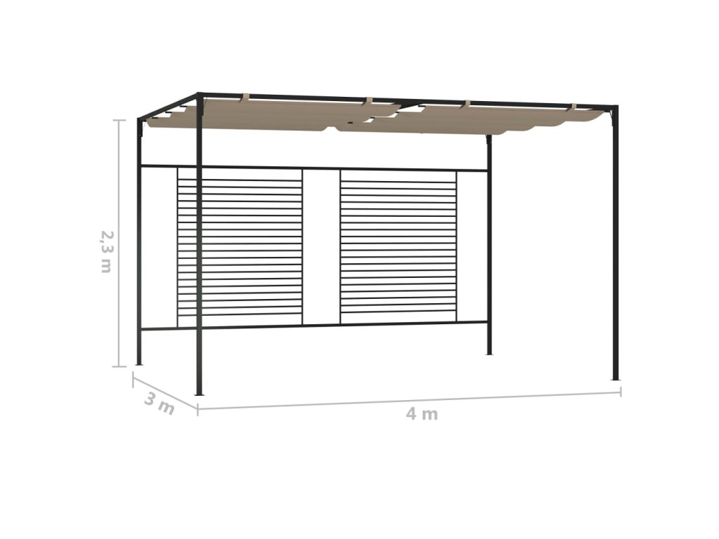 Tento prístrešok má pevnú železnú konštrukciu, takže je silný a pevný pre vonkajšie použitie. Výsuvná strecha vás ochráni pred škodlivými UV lúčmi a tiež pred dažďom, aby ste si mohli exteriérové akcie užiť bez obáv.