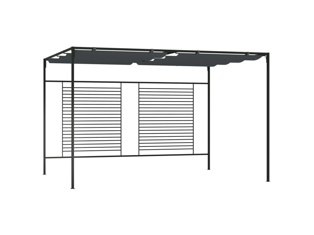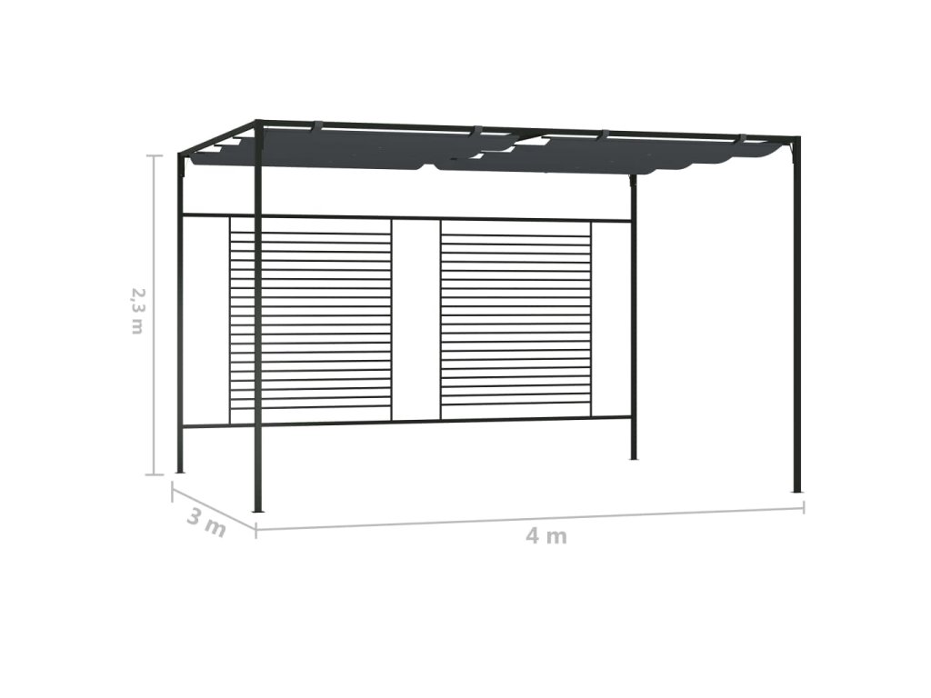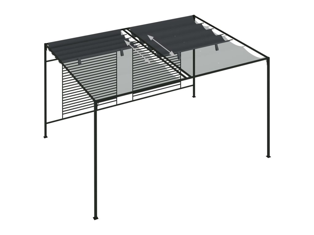 Tento prístrešok má pevnú železnú konštrukciu, takže je silný a pevný pre vonkajšie použitie. Výsuvná strecha vás ochráni pred škodlivými UV lúčmi a tiež pred dažďom, aby ste si mohli exteriérové akcie užiť bez obáv.