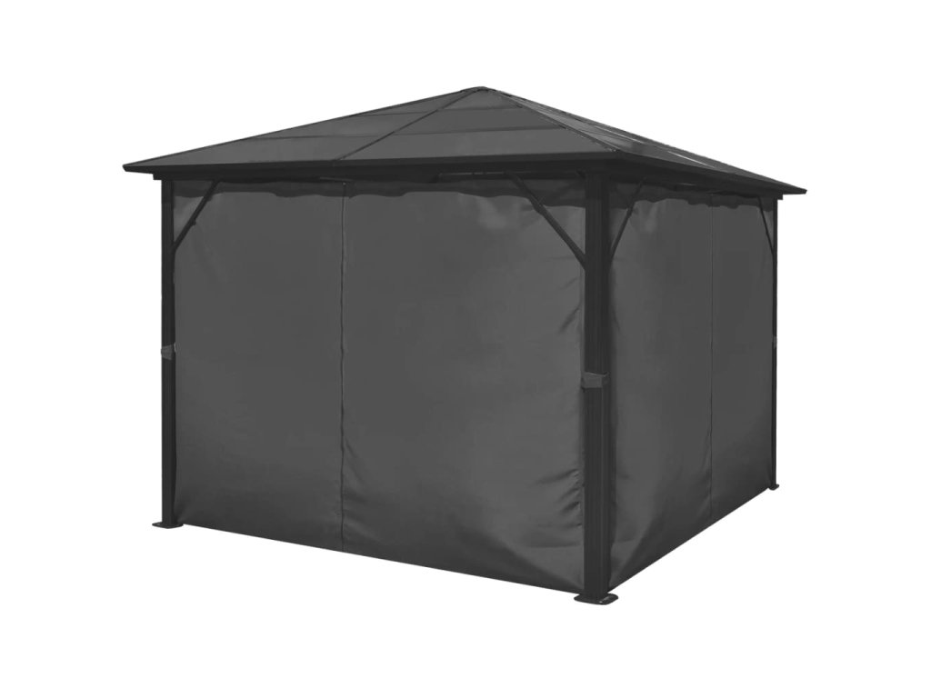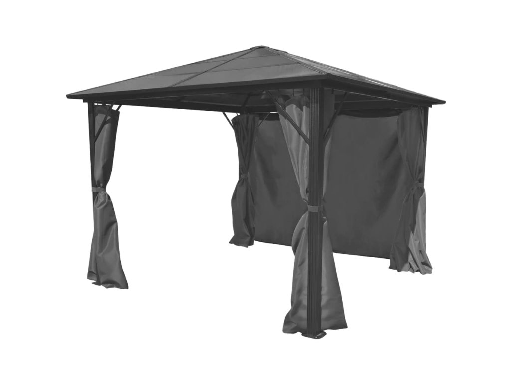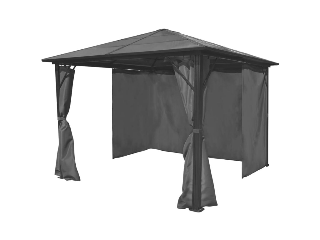 Strecha vyrobená zo 6 mm hrubej PC dosky odolnej voči UV žiareniu vás ochráni pred priamym slnkom a škodlivými UV lúčmi. Altánok má spoľahlivú konštrukciu z pevného hlíníka, vďaka čomu je veľmi stabilný a extrémne odolný voči hrdzi.