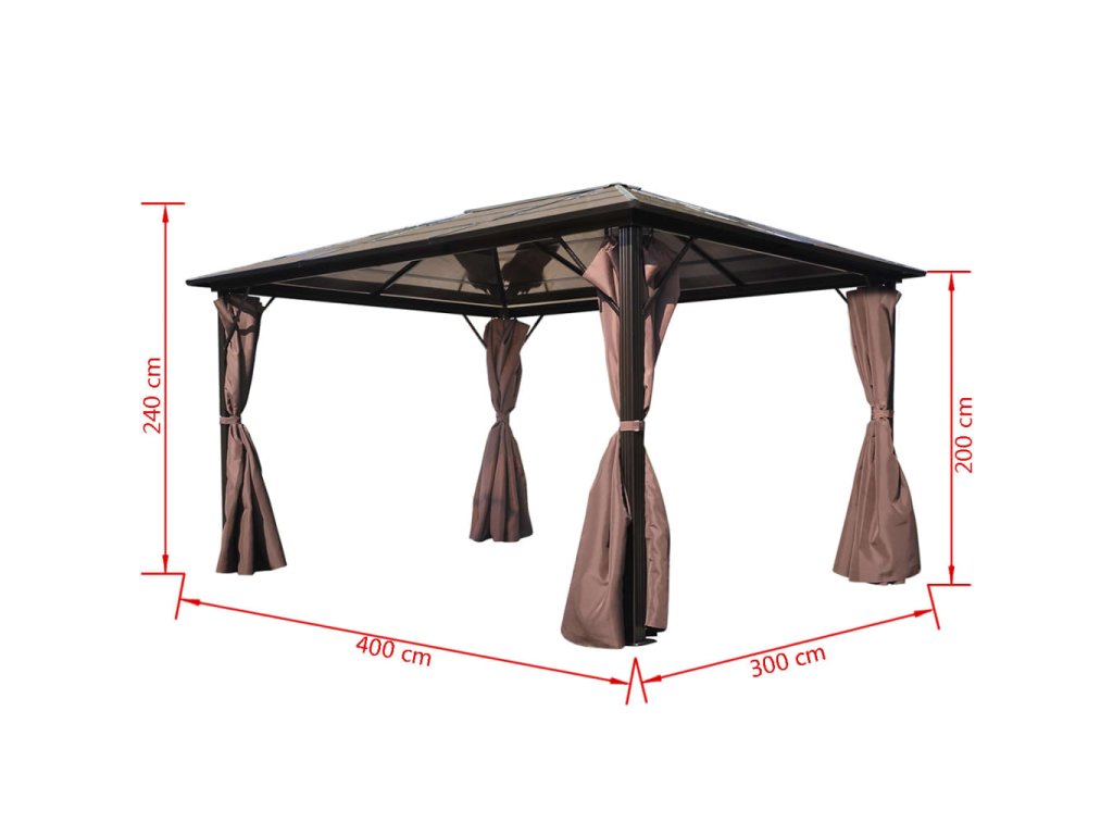 Strecha vyrobená z PC dosky s hrúbkou 6 mm je odolná voči UV žiareniu a ochráni vás pred priamym slnkom a škodlivými UV lúčmi. Prístrešok pozostáva zo spoľahlivej konštrukcie z pevného hliníka, vďaka čomu je skutočne stabilný a odolný voči hrdzi.