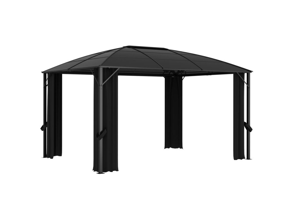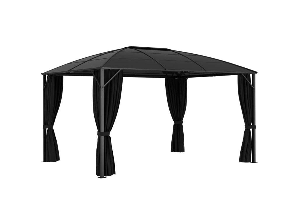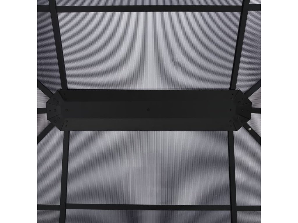 Strecha je vyrobená z 6 mm hrubej PC dosky, ktorá je tiež odolná voči UV žiareniu. Rám je vyrobený z hliníka a ocele, vďaka čomu je pevný. Okrem toho sa 4 ľahko čistiteľné polyesterové záclony dajú zatvoriť, aby sa zaistilo viac súkromia, prípadne sa dajú uviazať pomocou pribalených šnúrok.