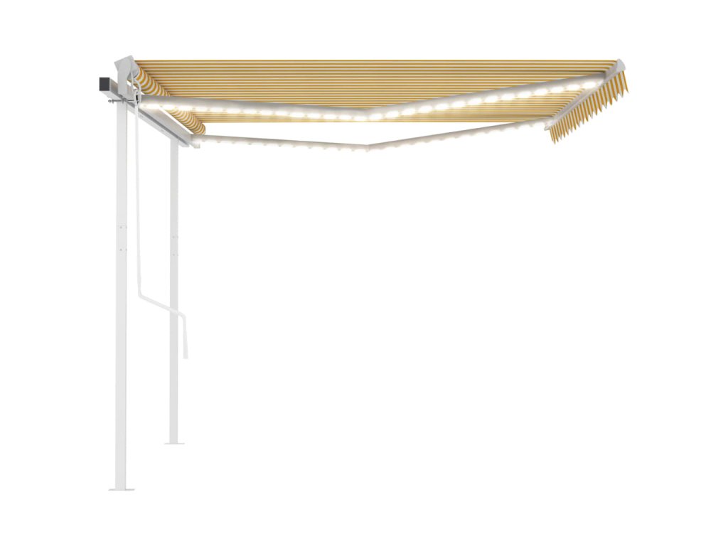 Táto vonkajšia markíza pozostáva z hliníkového rámu s práškovou povrchovou úpravou, ktorý je odolný voči hrdzi, vďaka čomu je ľahká a zároveň pevná. Látka terasovej markízy je vyrobená z polyesteru s vysokou hustotou s vrstvou PU, a preto je vodovzdorná a odolná voči UV žiareniu. Robustný železný stĺpik jej dodáva pevnosť a stabilitu. Sklon a výšku markízy si môžete podľa potreby nastaviť. Automatická vysúvacia markíza sa dá jednoducho vysúvať a zaťahovať pomocou diaľkového ovládania, ktoré je súčasťou balenia. Markíza sa dá bez problémov ovládať aj pomocou dlhej ručnej kľuky. Okrem toho je vybavená aj senzorom vetra, ktorý markízu automaticky zatiahne počas veterných dní. LED svetlá vám v noci poskytnú energeticky úsporné osvetlenie.
