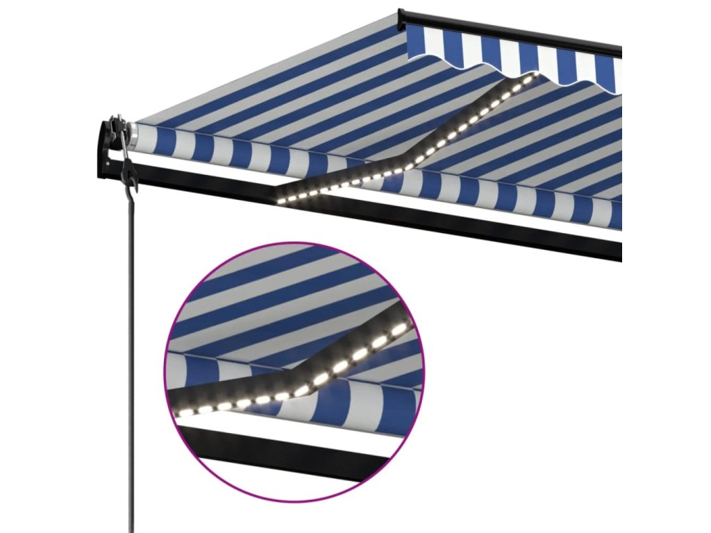 Táto vonkajšia markíza pozostáva z hliníkového rámu s práškovou povrchovou úpravou, ktorý je odolný voči hrdzi, vďaka čomu je ľahká a zároveň pevná. Látka terasovej markízy je vyrobená z polyesteru s vysokou hustotou s vrstvou PU, a preto je vodovzdorná a odolná voči UV žiareniu. Sklon a výšku markízy si môžete podľa potreby nastaviť. Automatická vysúvacia markíza sa dá jednoducho vysúvať a zaťahovať pomocou diaľkového ovládania, ktoré je súčasťou balenia. Markíza sa dá bez problémov ovládať aj pomocou dlhej ručnej kľuky. Okrem toho je vybavená aj senzorom vetra, ktorý markízu automaticky zatiahne počas veterných dní. LED svetlá vám v noci poskytnú energeticky úsporné osvetlenie.