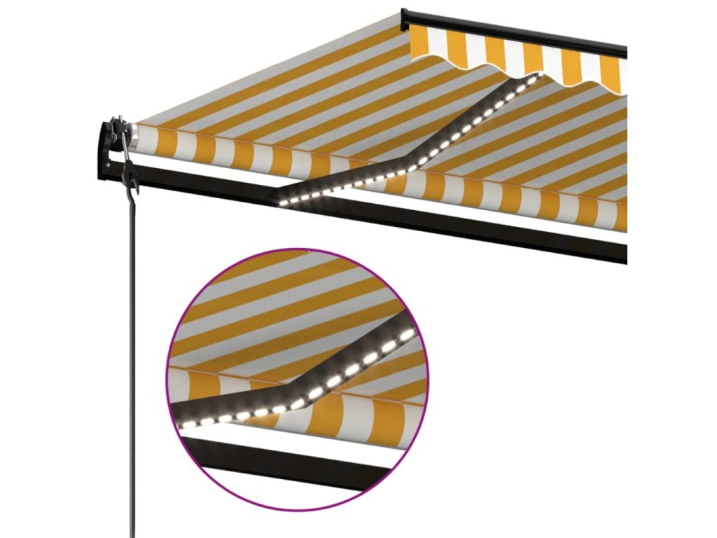 Táto vonkajšia markíza pozostáva z hliníkového rámu s práškovou povrchovou úpravou, ktorý je odolný voči hrdzi, vďaka čomu je ľahká a zároveň pevná. Látka terasovej markízy je vyrobená z polyesteru s vysokou hustotou s vrstvou PU, a preto je vodovzdorná a odolná voči UV žiareniu. Sklon a výšku markízy si môžete podľa potreby nastaviť. Automatická vysúvacia markíza sa dá jednoducho vysúvať a zaťahovať pomocou diaľkového ovládania, ktoré je súčasťou balenia. Markíza sa dá bez problémov ovládať aj pomocou dlhej ručnej kľuky. Okrem toho je vybavená aj senzorom vetra, ktorý markízu automaticky zatiahne počas veterných dní. LED svetlá vám v noci poskytnú energeticky úsporné osvetlenie.