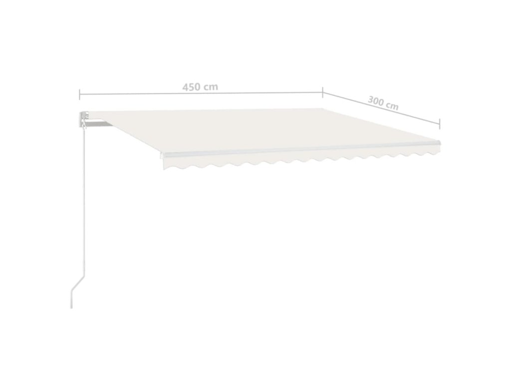 Táto vonkajšia markíza pozostáva z hliníkového rámu s práškovou povrchovou úpravou, ktorý je odolný voči hrdzi, vďaka čomu je ľahká a zároveň pevná. Látka terasovej markízy je vyrobená z polyesteru s vysokou hustotou s vrstvou PU, a preto je vodovzdorná a odolná voči UV žiareniu. Sklon a výšku markízy si môžete podľa potreby nastaviť. Automatická vysúvacia markíza sa dá jednoducho vysúvať a zaťahovať pomocou diaľkového ovládania, ktoré je súčasťou balenia. Markíza sa dá bez problémov ovládať aj pomocou dlhej ručnej kľuky. Okrem toho je vybavená aj senzorom vetra, ktorý markízu automaticky zatiahne počas veterných dní. LED svetlá vám v noci poskytnú energeticky úsporné osvetlenie.