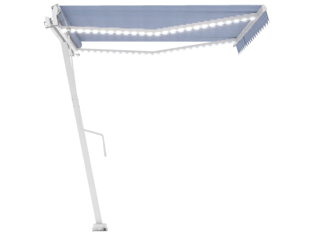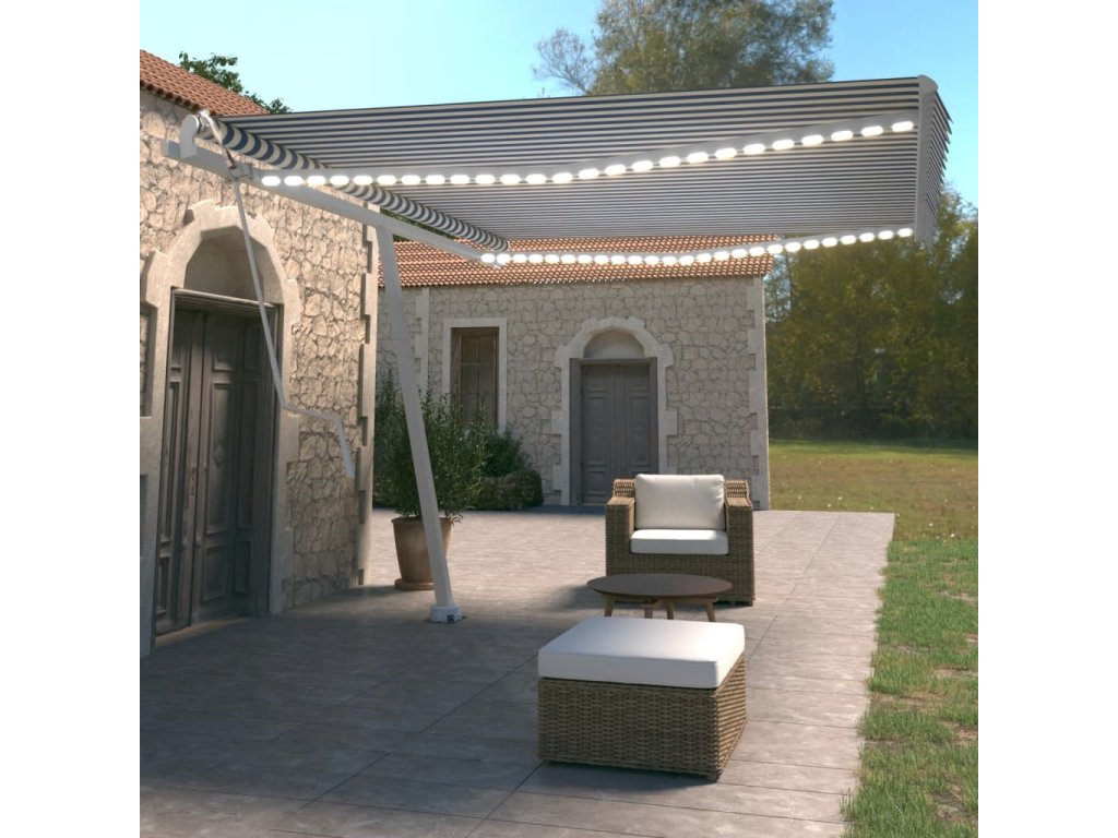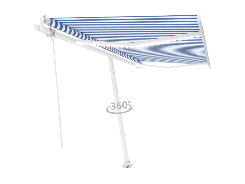 Táto vonkajšia markíza pozostáva z hliníkového rámu s práškovou povrchovou úpravou, ktorý je odolný voči hrdzi, vďaka čomu je ľahká a zároveň pevná. Látka voľne stojacej markízy je vyrobená z polyesteru s vysokou hustotou s vrstvou PU, a preto je vodovzdorná a odolná voči UV žiareniu. Sklon a výšku markízy si môžete podľa potreby nastaviť. Robustná základňa sa dá otáčať o 360 stupňov, aby ste si ju mohli vždy prispôsobiť podľa svojich predstáv. Automatická vysúvacia markíza sa dá jednoducho vysúvať a zaťahovať pomocou diaľkového ovládania, ktoré je súčasťou balenia. Terasová markíza sa dá bez problémov ovládať aj pomocou dlhej ručnej kľuky. Okrem toho je vybavená aj senzorom vetra, ktorý markízu automaticky zatiahne počas veterných dní. LED svetlá vám v noci poskytnú energeticky úsporné osvetlenie.