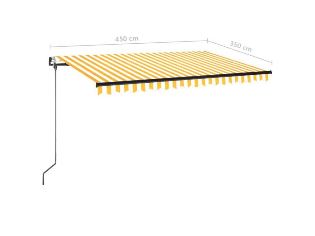 Táto vonkajšia markíza pozostáva z hliníkového rámu s práškovou povrchovou úpravou, ktorý je odolný voči hrdzi, vďaka čomu je ľahká a zároveň pevná. Látka terasovej markízy je vyrobená z polyesteru s vysokou hustotou s vrstvou PU, a preto je vodovzdorná a odolná voči UV žiareniu. Sklon a výšku markízy si môžete podľa potreby nastaviť. Automatická vysúvacia markíza sa dá jednoducho vysúvať a zaťahovať pomocou diaľkového ovládania, ktoré je súčasťou balenia. Markíza sa dá bez problémov ovládať aj pomocou dlhej ručnej kľuky. Okrem toho je vybavená aj senzorom vetra, ktorý markízu automaticky zatiahne počas veterných dní. LED svetlá vám v noci poskytnú energeticky úsporné osvetlenie.