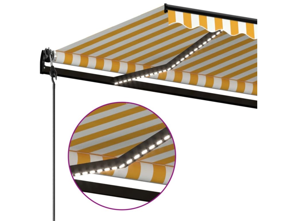 Táto vonkajšia markíza pozostáva z hliníkového rámu s práškovou povrchovou úpravou, ktorý je odolný voči hrdzi, vďaka čomu je ľahká a zároveň pevná. Látka terasovej markízy je vyrobená z polyesteru s vysokou hustotou s vrstvou PU, a preto je vodovzdorná a odolná voči UV žiareniu. Sklon a výšku markízy si môžete podľa potreby nastaviť. Automatická vysúvacia markíza sa dá jednoducho vysúvať a zaťahovať pomocou diaľkového ovládania, ktoré je súčasťou balenia. Markíza sa dá bez problémov ovládať aj pomocou dlhej ručnej kľuky. Okrem toho je vybavená aj senzorom vetra, ktorý markízu automaticky zatiahne počas veterných dní. LED svetlá vám v noci poskytnú energeticky úsporné osvetlenie.