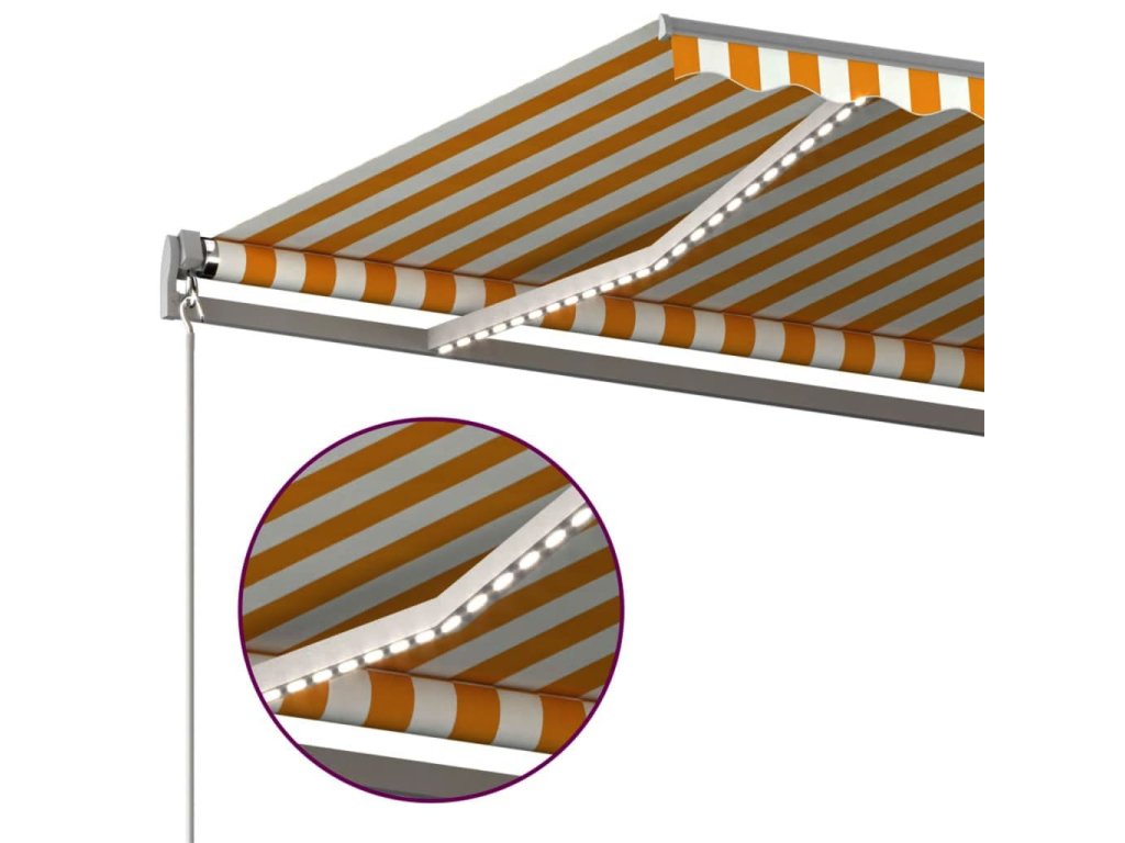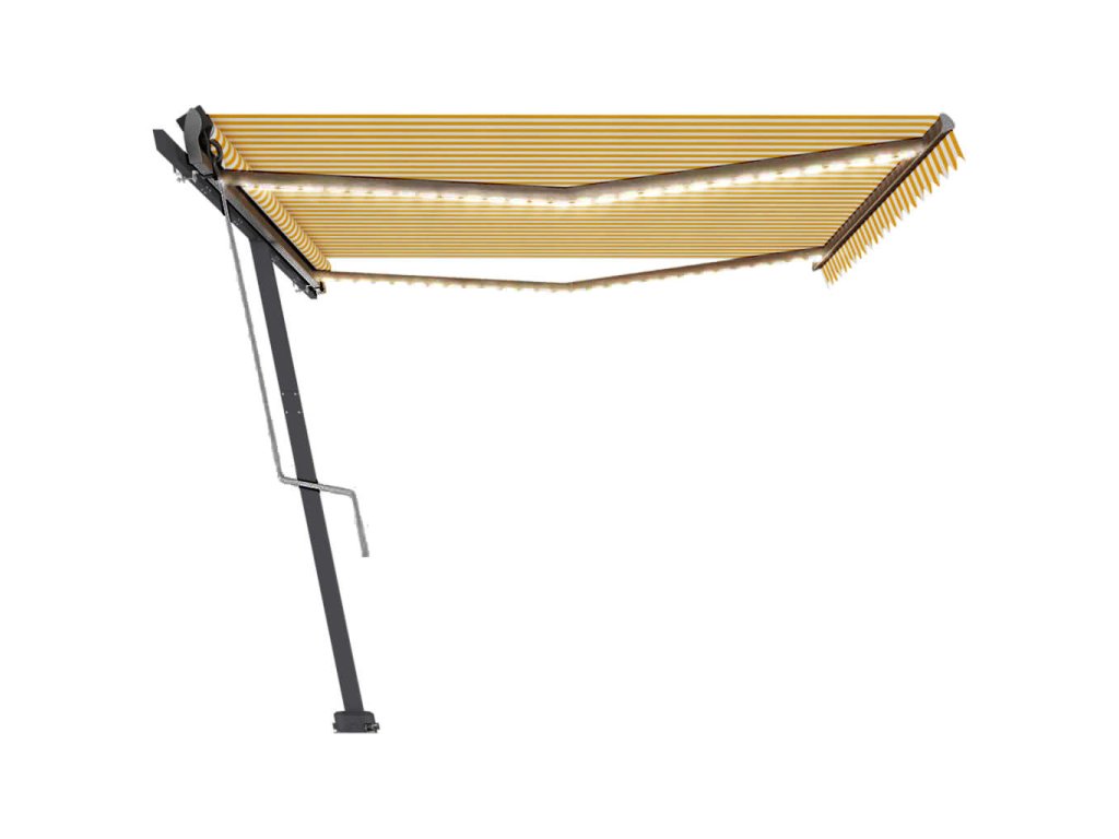 Táto vonkajšia markíza pozostáva z hliníkového rámu s práškovou povrchovou úpravou, ktorý je odolný voči hrdzi, vďaka čomu je ľahká a zároveň pevná. Látka voľne stojacej markízy je vyrobená z polyesteru s vysokou hustotou s vrstvou PU, a preto je vodovzdorná a odolná voči UV žiareniu. Sklon a výšku markízy si môžete podľa potreby nastaviť. Robustná základňa sa dá otáčať o 360 stupňov, aby ste si ju mohli vždy prispôsobiť podľa svojich predstáv. Automatická vysúvacia markíza sa dá jednoducho vysúvať a zaťahovať pomocou diaľkového ovládania, ktoré je súčasťou balenia. Terasová markíza sa dá bez problémov ovládať aj pomocou dlhej ručnej kľuky. Okrem toho je vybavená aj senzorom vetra, ktorý markízu automaticky zatiahne počas veterných dní. LED svetlá vám v noci poskytnú energeticky úsporné osvetlenie.