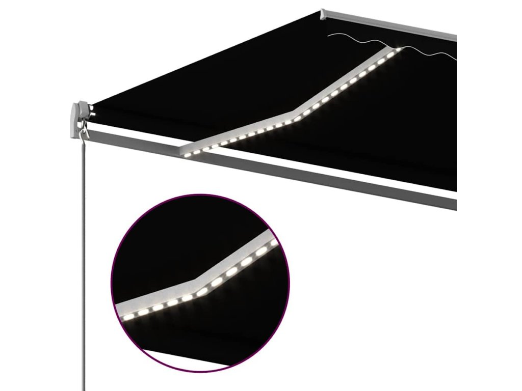 Táto vonkajšia markíza pozostáva z hliníkového rámu s práškovou povrchovou úpravou, ktorý je odolný voči hrdzi, vďaka čomu je ľahká a zároveň pevná. Robustný železný stĺpik jej dodáva stabilitu. Látka terasovej markízy je vyrobená z polyesteru s vysokou hustotou s vrstvou PU, a preto je vodovzdorná a odolná voči UV žiareniu. Sklon a výšku markízy si môžete podľa potreby nastaviť. Automatická vysúvacia markíza sa dá jednoducho vysúvať a zaťahovať pomocou diaľkového ovládania, ktoré je súčasťou balenia. Markíza sa dá bez problémov ovládať aj pomocou dlhej ručnej kľuky. Okrem toho je vybavená aj senzorom vetra, ktorý markízu automaticky zatiahne počas veterných dní. LED svetlá vám v noci poskytnú energeticky úsporné osvetlenie.