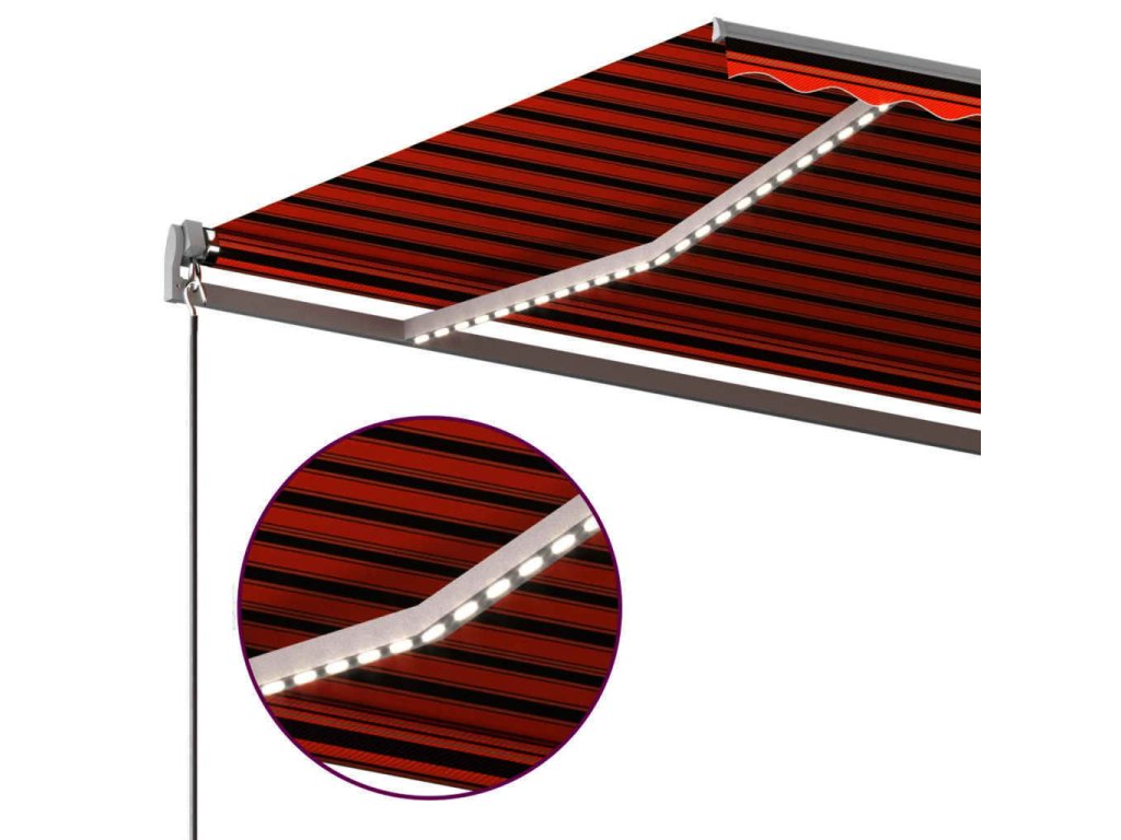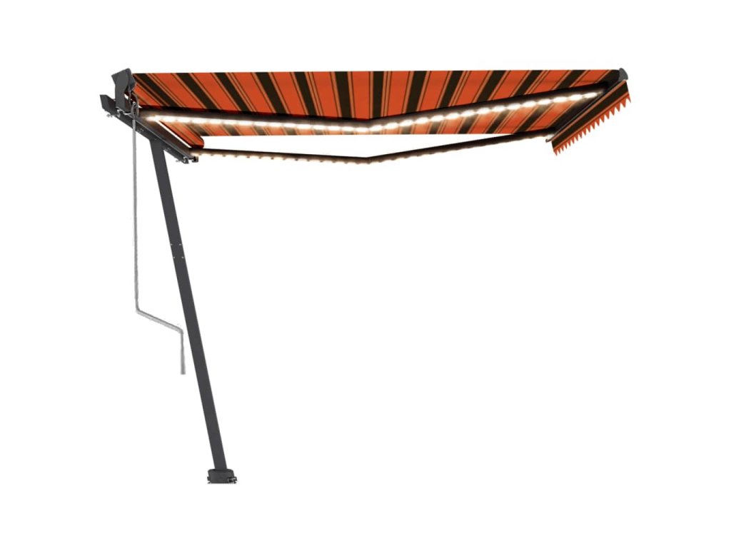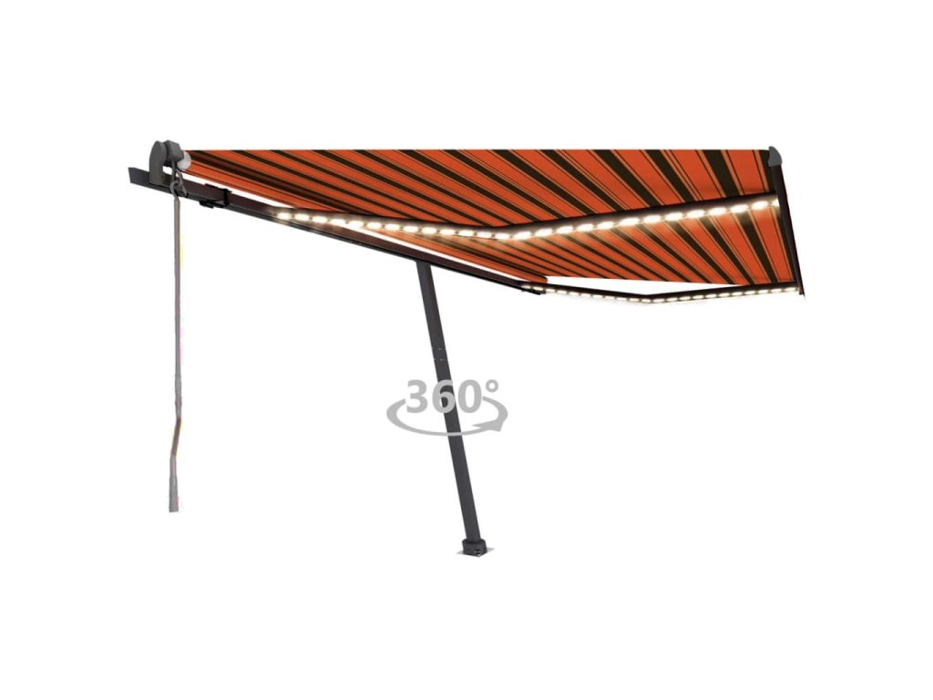 Táto vonkajšia markíza pozostáva z hliníkového rámu s práškovou povrchovou úpravou, ktorý je odolný voči hrdzi, vďaka čomu je ľahká a zároveň pevná. Látka voľne stojacej markízy je vyrobená z polyesteru s vysokou hustotou s vrstvou PU, a preto je vodovzdorná a odolná voči UV žiareniu. Sklon a výšku markízy si môžete podľa potreby nastaviť. Robustná základňa sa dá otáčať o 360 stupňov, aby ste si ju mohli vždy prispôsobiť podľa svojich predstáv. Automatická vysúvacia markíza sa dá jednoducho vysúvať a zaťahovať pomocou diaľkového ovládania, ktoré je súčasťou balenia. Terasová markíza sa dá bez problémov ovládať aj pomocou dlhej ručnej kľuky. Okrem toho je vybavená aj senzorom vetra, ktorý markízu automaticky zatiahne počas veterných dní. LED svetlá vám v noci poskytnú energeticky úsporné osvetlenie.