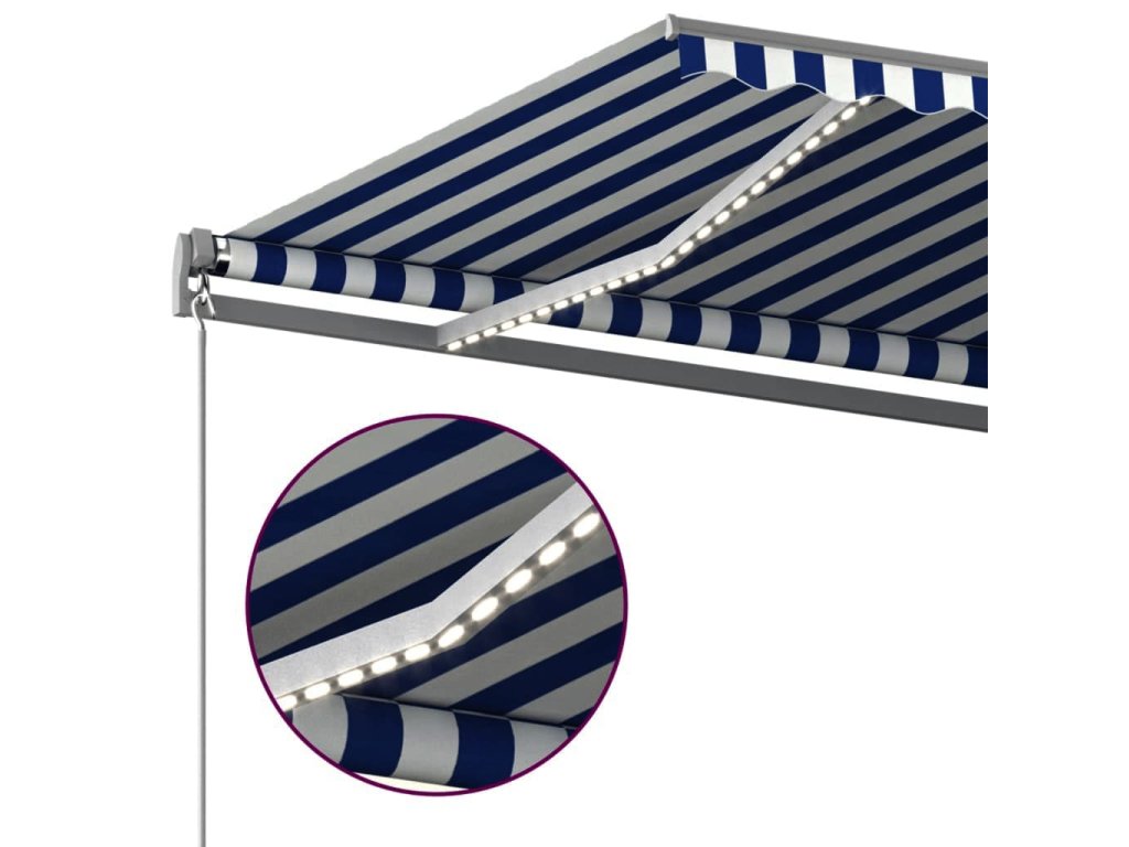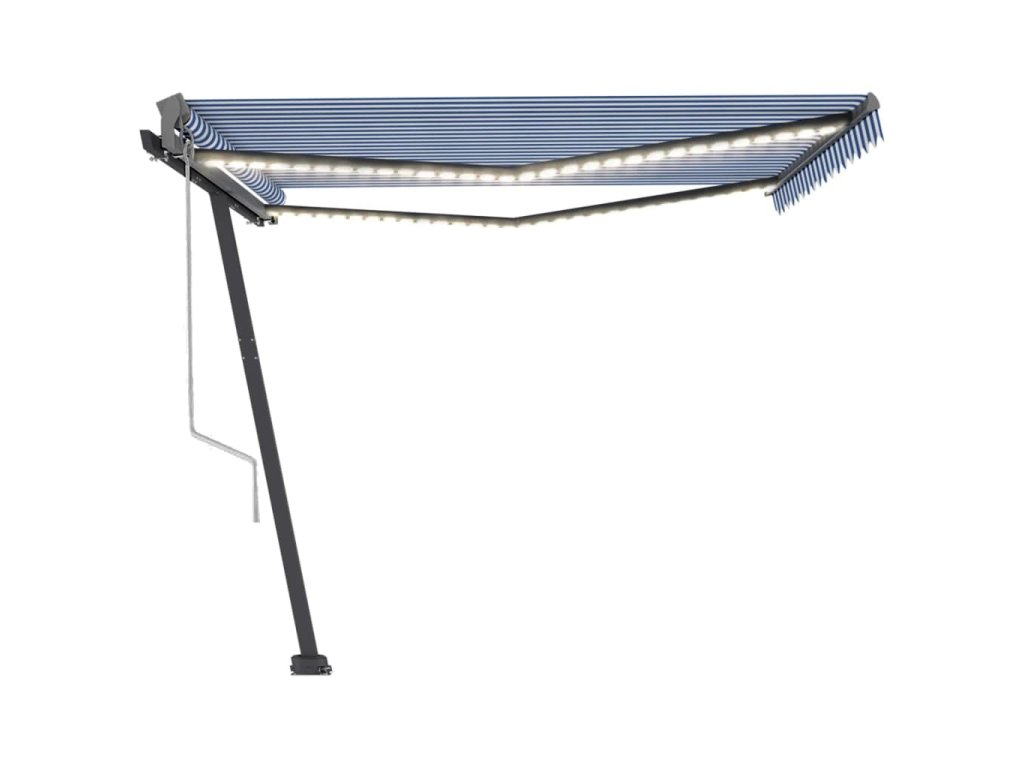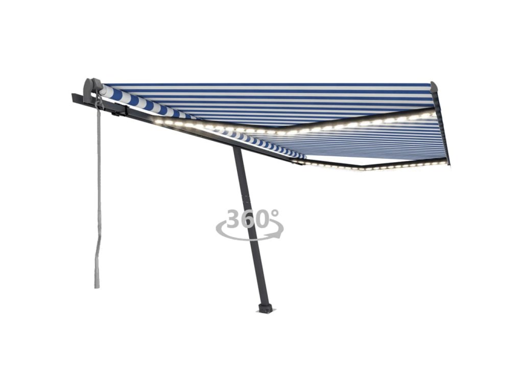 Táto vonkajšia markíza pozostáva z hliníkového rámu s práškovou povrchovou úpravou, ktorý je odolný voči hrdzi, vďaka čomu je ľahká a zároveň pevná. Látka voľne stojacej markízy je vyrobená z polyesteru s vysokou hustotou s vrstvou PU, a preto je vodovzdorná a odolná voči UV žiareniu. Sklon a výšku markízy si môžete podľa potreby nastaviť. Robustná základňa sa dá otáčať o 360 stupňov, aby ste si ju mohli vždy prispôsobiť podľa svojich predstáv. Automatická vysúvacia markíza sa dá jednoducho vysúvať a zaťahovať pomocou diaľkového ovládania, ktoré je súčasťou balenia. Terasová markíza sa dá bez problémov ovládať aj pomocou dlhej ručnej kľuky. Okrem toho je vybavená aj senzorom vetra, ktorý markízu automaticky zatiahne počas veterných dní. LED svetlá vám v noci poskytnú energeticky úsporné osvetlenie.