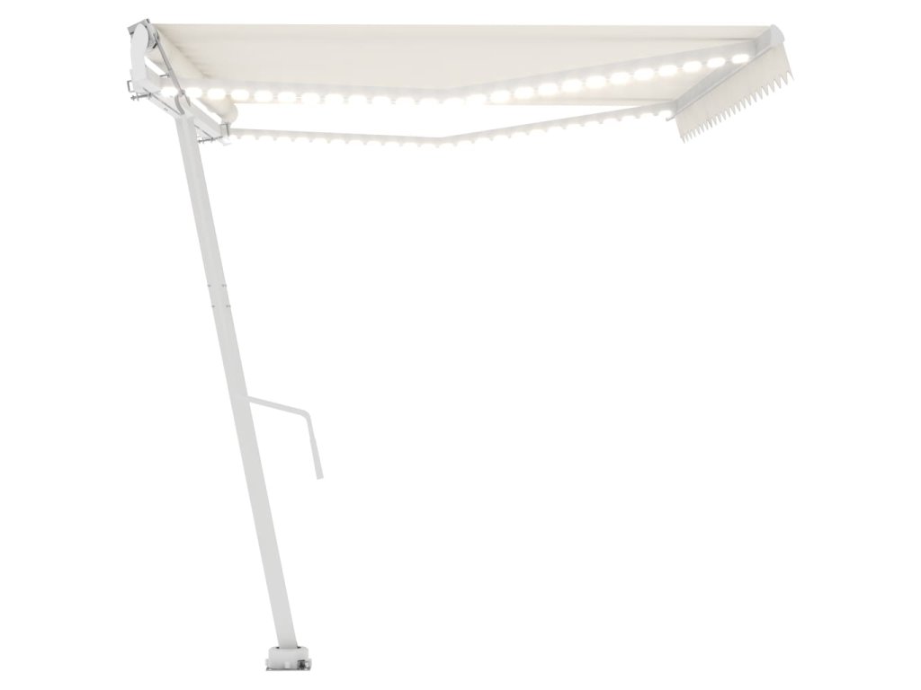 Táto vonkajšia markíza pozostáva z hliníkového rámu s práškovou povrchovou úpravou, ktorý je odolný voči hrdzi, vďaka čomu je ľahká a zároveň pevná. Látka voľne stojacej markízy je vyrobená z polyesteru s vysokou hustotou s vrstvou PU, a preto je vodovzdorná a odolná voči UV žiareniu. Sklon a výšku markízy si môžete podľa potreby nastaviť. Robustná základňa sa dá otáčať o 360 stupňov, aby ste si ju mohli vždy prispôsobiť podľa svojich predstáv. Automatická vysúvacia markíza sa dá jednoducho vysúvať a zaťahovať pomocou diaľkového ovládania, ktoré je súčasťou balenia. Terasová markíza sa dá bez problémov ovládať aj pomocou dlhej ručnej kľuky. Okrem toho je vybavená aj senzorom vetra, ktorý markízu automaticky zatiahne počas veterných dní. LED svetlá vám v noci poskytnú energeticky úsporné osvetlenie.