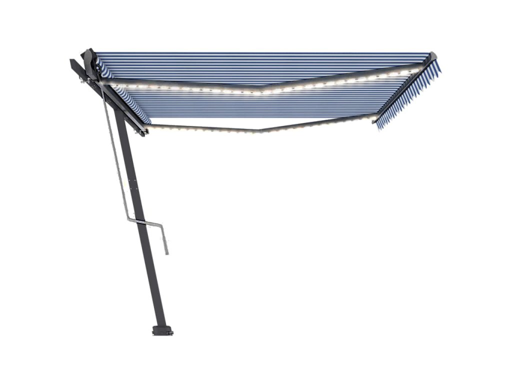 Táto vonkajšia markíza pozostáva z hliníkového rámu s práškovou povrchovou úpravou, ktorý je odolný voči hrdzi, vďaka čomu je ľahká a zároveň pevná. Látka voľne stojacej markízy je vyrobená z polyesteru s vysokou hustotou s vrstvou PU, a preto je vodovzdorná a odolná voči UV žiareniu. Sklon a výšku markízy si môžete podľa potreby nastaviť. Robustná základňa sa dá otáčať o 360 stupňov, aby ste si ju mohli vždy prispôsobiť podľa svojich predstáv. Automatická vysúvacia markíza sa dá jednoducho vysúvať a zaťahovať pomocou diaľkového ovládania, ktoré je súčasťou balenia. Terasová markíza sa dá bez problémov ovládať aj pomocou dlhej ručnej kľuky. Okrem toho je vybavená aj senzorom vetra, ktorý markízu automaticky zatiahne počas veterných dní. LED svetlá vám v noci poskytnú energeticky úsporné osvetlenie.