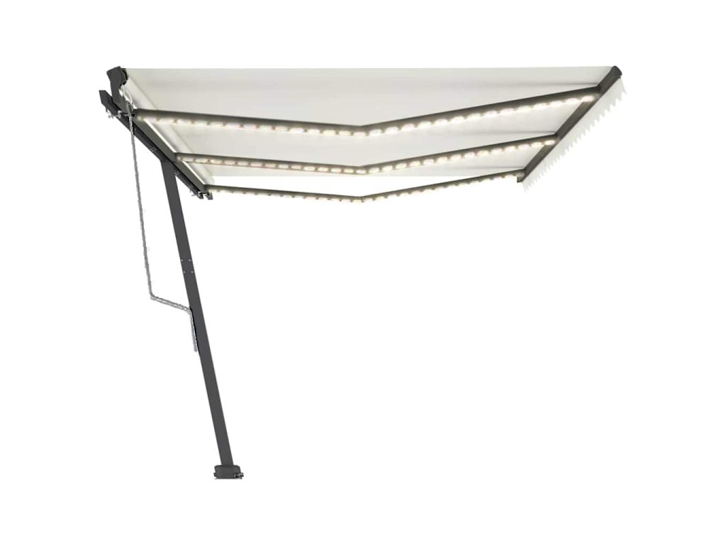 Táto vonkajšia markíza pozostáva z hliníkového rámu s práškovou povrchovou úpravou, ktorý je odolný voči hrdzi, vďaka čomu je ľahká a zároveň pevná. Látka voľne stojacej markízy je vyrobená z polyesteru s vysokou hustotou s vrstvou PU, a preto je vodovzdorná a odolná voči UV žiareniu. Sklon a výšku markízy si môžete podľa potreby nastaviť. Robustná základňa sa dá otáčať o 360 stupňov, aby ste si ju mohli vždy prispôsobiť podľa svojich predstáv. Automatická vysúvacia markíza sa dá jednoducho vysúvať a zaťahovať pomocou diaľkového ovládania, ktoré je súčasťou balenia. Terasová markíza sa dá bez problémov ovládať aj pomocou dlhej ručnej kľuky. Okrem toho je vybavená aj senzorom vetra, ktorý markízu automaticky zatiahne počas veterných dní. LED svetlá vám v noci poskytnú energeticky úsporné osvetlenie.