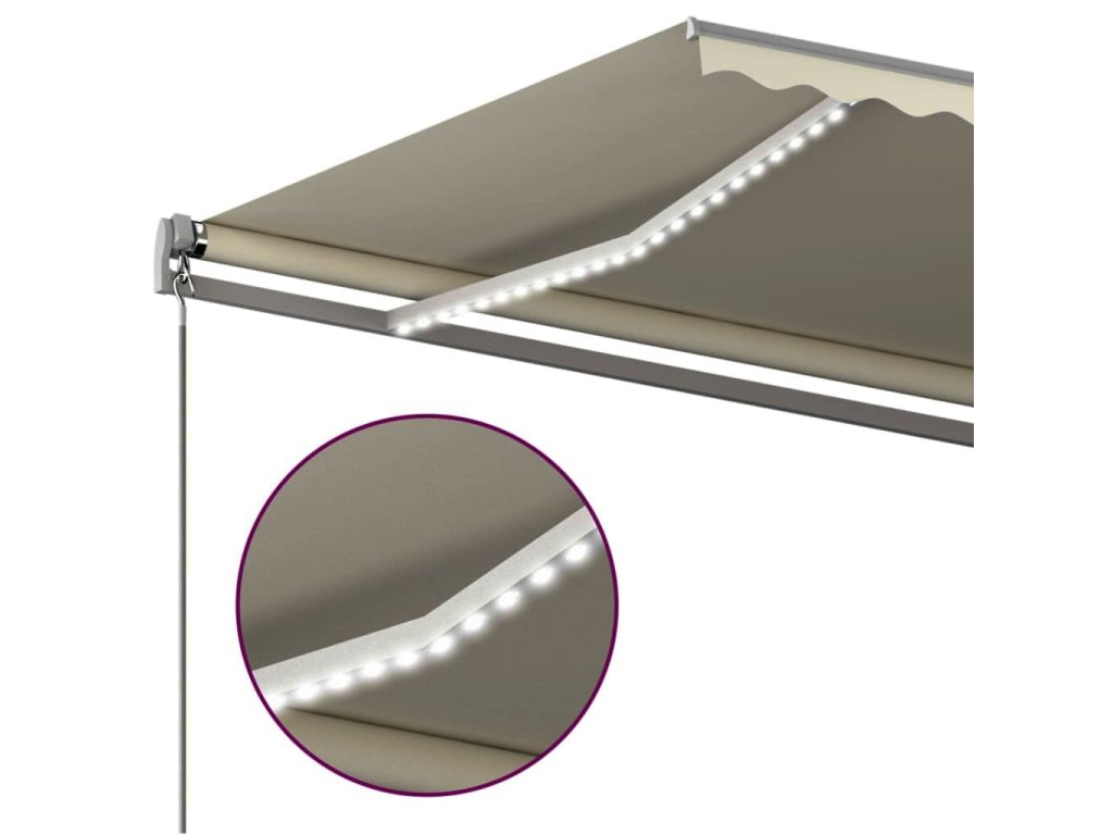 Táto vonkajšia markíza pozostáva z hliníkového rámu s práškovou povrchovou úpravou, ktorý je odolný voči hrdzi, vďaka čomu je ľahká a zároveň pevná. Robustný železný stĺpik jej dodáva stabilitu. Látka terasovej markízy je vyrobená z polyesteru s vysokou hustotou s vrstvou PU, a preto je vodovzdorná a odolná voči UV žiareniu. Sklon a výšku markízy si môžete podľa potreby nastaviť. Automatická vysúvacia markíza sa dá jednoducho vysúvať a zaťahovať pomocou diaľkového ovládania, ktoré je súčasťou balenia. Markíza sa dá bez problémov ovládať aj pomocou dlhej ručnej kľuky. Okrem toho je vybavená aj senzorom vetra, ktorý markízu automaticky zatiahne počas veterných dní. LED svetlá vám v noci poskytnú energeticky úsporné osvetlenie.
