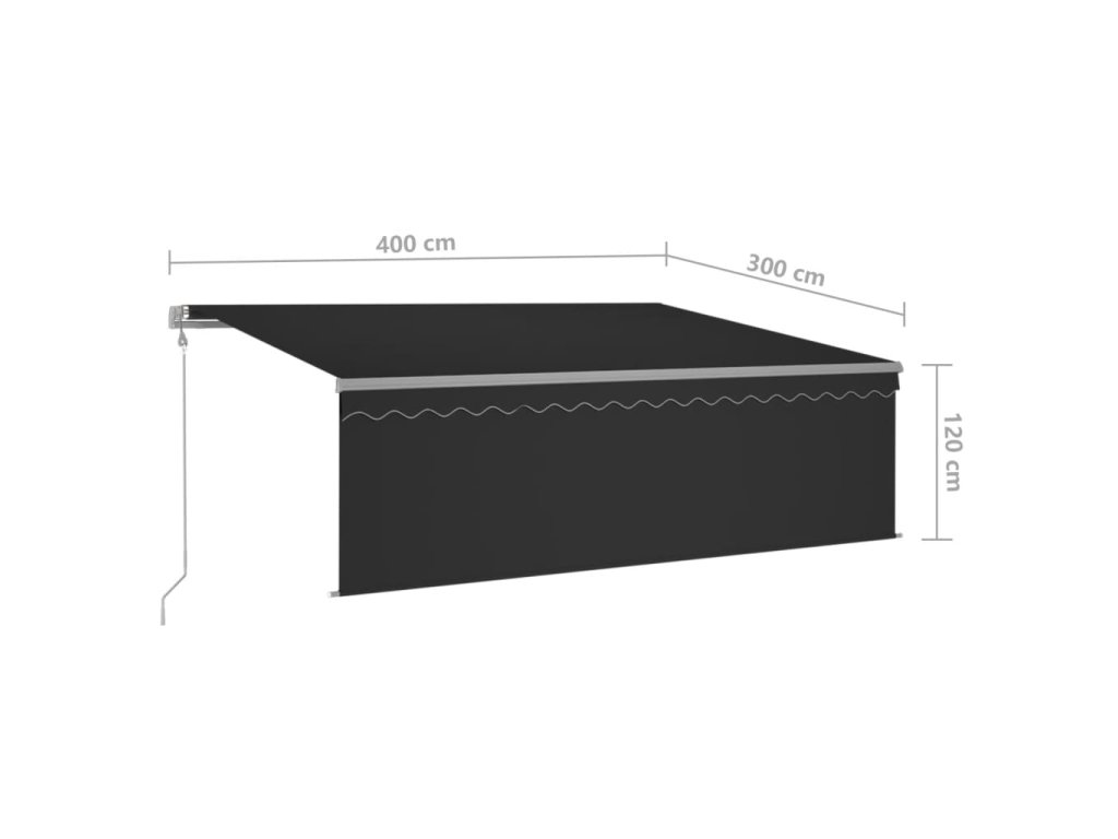 Táto vonkajšia markíza je vyrobená z nehrdzavejúceho práškovaného hliníkového rámu, vďaka čomu je ľahká, ale pevná. Tkanina terasovej markízy je vyrobená z polyesteru s vysokou hustotou s PU povrchovou úpravou, je odolná voči UV žiareniu a vode. Ďalej je možné podľa vašich preferencií nastaviť uhol a výšku. Automatickú výsuvnú markízu môžete ľahko otvoriť a zasunúť pomocou pribaleného diaľkového ovládača. Markízu dokážete hladko ovládať aj dlhou kľukou. Je tiež vybavená snímačom vetra, ktorý dokáže vašu markízu automaticky uzavrieť počas veterných dní. LED svetlá navyše poskytujú v noci energeticky úsporné osvetlenie. Tienidlo vás ochráni pred škodlivými UV lúčmi a poskytne súkromie.