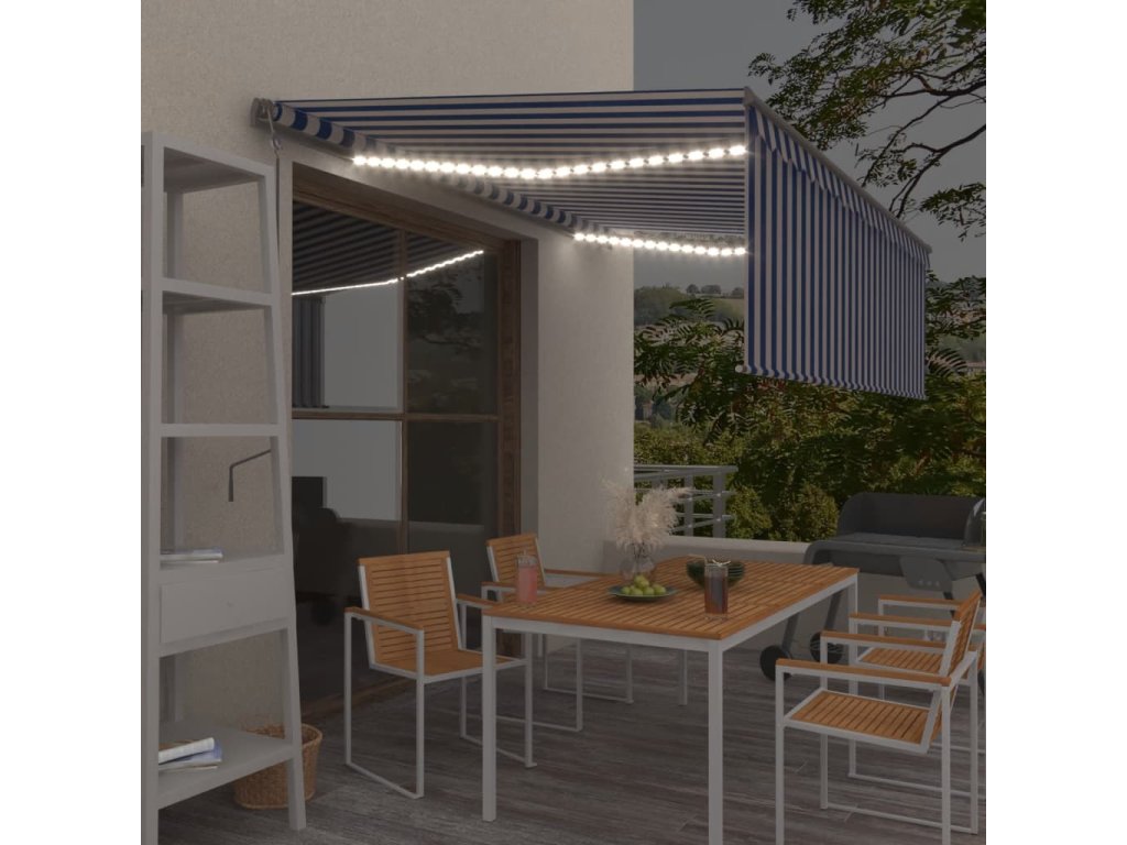 Táto vonkajšia markíza je vyrobená z nehrdzavejúceho práškovaného hliníkového rámu, vďaka čomu je ľahká, ale pevná. Tkanina terasovej markízy je vyrobená z polyesteru s vysokou hustotou s PU povrchovou úpravou, je odolná voči UV žiareniu a vode. Ďalej je možné podľa vašich preferencií nastaviť uhol a výšku. Automatickú výsuvnú markízu môžete ľahko otvoriť a zasunúť pomocou pribaleného diaľkového ovládača. Markízu dokážete hladko ovládať aj dlhou kľukou. Je tiež vybavená snímačom vetra, ktorý dokáže vašu markízu automaticky uzavrieť počas veterných dní. LED svetlá navyše poskytujú v noci energeticky úsporné osvetlenie. Tienidlo vás ochráni pred škodlivými UV lúčmi a poskytne súkromie.