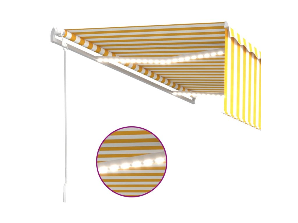 Táto vonkajšia markíza je vyrobená z nehrdzavejúceho práškovaného hliníkového rámu, vďaka čomu je ľahká, ale pevná. Tkanina terasovej markízy je vyrobená z polyesteru s vysokou hustotou s PU povrchovou úpravou, je odolná voči UV žiareniu a vode. Ďalej je možné podľa vašich preferencií nastaviť uhol a výšku. Automatickú výsuvnú markízu môžete ľahko otvoriť a zasunúť pomocou pribaleného diaľkového ovládača. Markízu dokážete hladko ovládať aj dlhou kľukou. Je tiež vybavená snímačom vetra, ktorý dokáže vašu markízu automaticky uzavrieť počas veterných dní. LED svetlá navyše poskytujú v noci energeticky úsporné osvetlenie. Tienidlo vás ochráni pred škodlivými UV lúčmi a poskytne súkromie.
