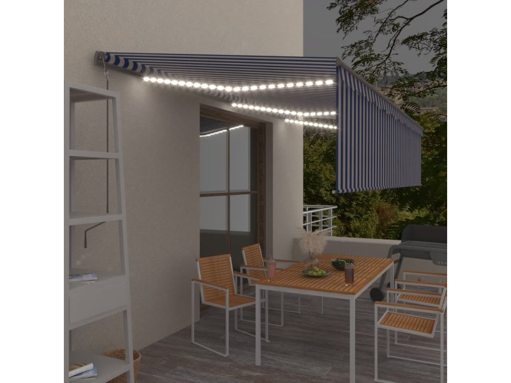 Táto vonkajšia markíza je vyrobená z nehrdzavejúceho práškovaného hliníkového rámu, vďaka čomu je ľahká, ale pevná. Tkanina terasovej markízy je vyrobená z polyesteru s vysokou hustotou s PU povrchovou úpravou, je odolná voči UV žiareniu a vode. Ďalej je možné podľa vašich preferencií nastaviť uhol a výšku. Automatickú výsuvnú markízu môžete ľahko otvoriť a zasunúť pomocou pribaleného diaľkového ovládača. Markízu dokážete hladko ovládať aj dlhou kľukou. Je tiež vybavená snímačom vetra, ktorý dokáže vašu markízu automaticky uzavrieť počas veterných dní. LED svetlá navyše poskytujú v noci energeticky úsporné osvetlenie. Tienidlo vás ochráni pred škodlivými UV lúčmi a poskytne súkromie.