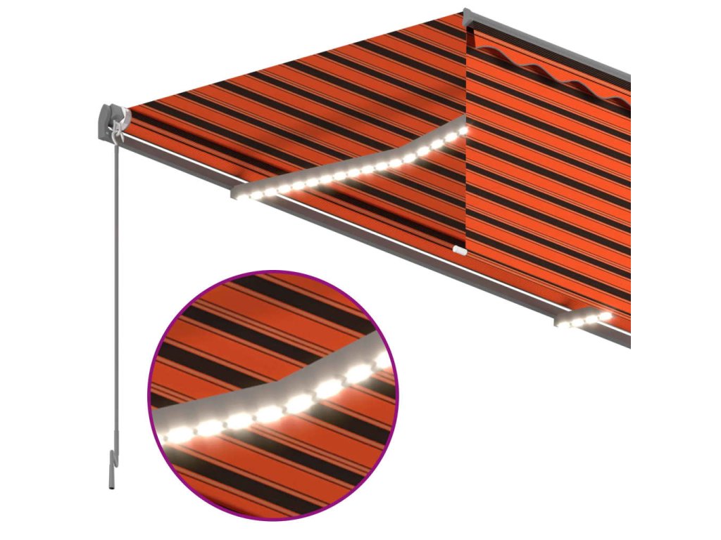 Táto vonkajšia markíza je vyrobená z nehrdzavejúceho práškovaného hliníkového rámu, vďaka čomu je ľahká, ale pevná. Tkanina terasovej markízy je vyrobená z polyesteru s vysokou hustotou s PU povrchovou úpravou, je odolná voči UV žiareniu a vode. Ďalej je možné podľa vašich preferencií nastaviť uhol a výšku. Automatickú výsuvnú markízu môžete ľahko otvoriť a zasunúť pomocou pribaleného diaľkového ovládača. Markízu dokážete hladko ovládať aj dlhou kľukou. Je tiež vybavená snímačom vetra, ktorý dokáže vašu markízu automaticky uzavrieť počas veterných dní. LED svetlá navyše poskytujú v noci energeticky úsporné osvetlenie. Tienidlo vás ochráni pred škodlivými UV lúčmi a poskytne súkromie.