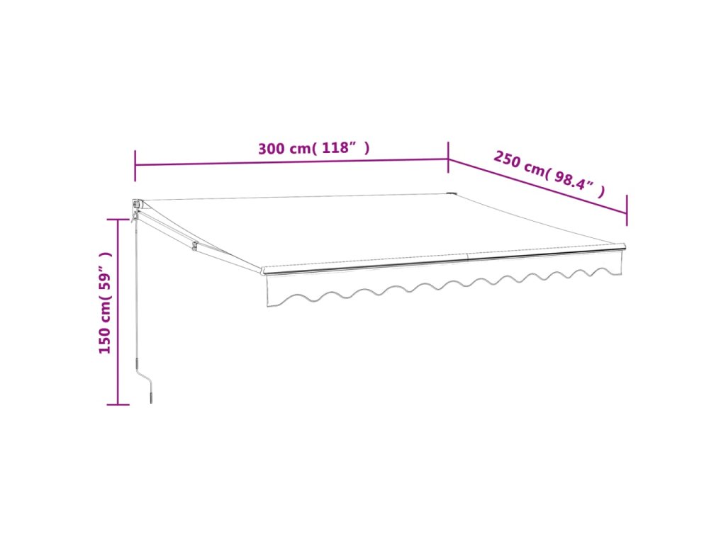 - Odolný materiál: Rám markízy je vyrobený z hliníka s práškovým nástrekom, ktorý je robustný a odolný. Látka s PU povrchovou úpravou je UV odolná. Vašu rodinu alebo hostí ochráni pred UV lúčmi a oslňujúcim slnečným žiarením.