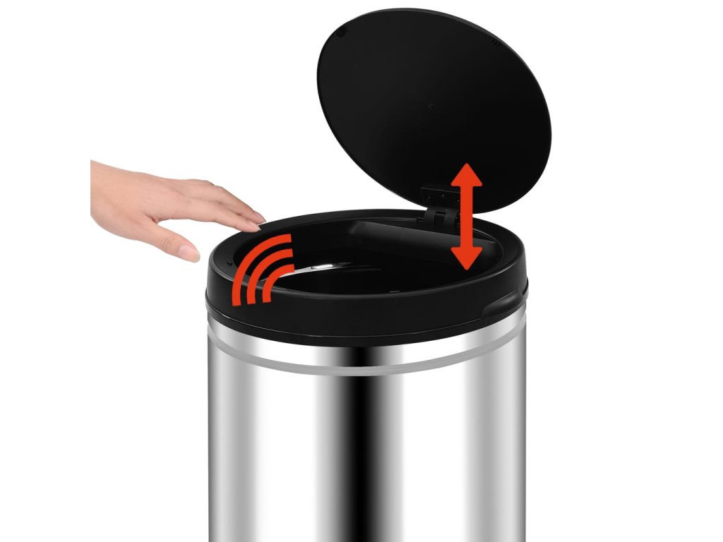 Náš automatický 70 l odpadkový kôš so senzorom má špeciálny dizajn, a tak sa pri vyhadzovaní odpadkov nebudete musieť dotýkať veka. Keď snímač zaznamená objekt vo vzdialenosti do 20 cm od odpadkového koša, jeho veko sa automaticky otvorí a po odhodení odpadu sa zas automaticky zavrie.