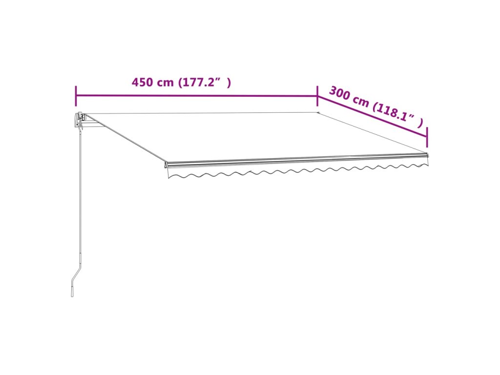 Táto vonkajšia markíza je vyrobená z nehrdzavejúceho práškovaného hliníkového rámu, vďaka čomu je ľahká, ale pevná. Tkanina terasovej markízy je vyrobená z polyesteru s vysokou hustotou s PU povrchovou úpravou, je odolná voči UV žiareniu a vode. Ďalej je možné podľa vašich preferencií nastaviť uhol a výšku. Automatickú výsuvnú markízu môžete ľahko otvoriť a zasunúť pomocou pribaleného diaľkového ovládača. Markízu dokážete hladko ovládať aj dlhou kľukou.